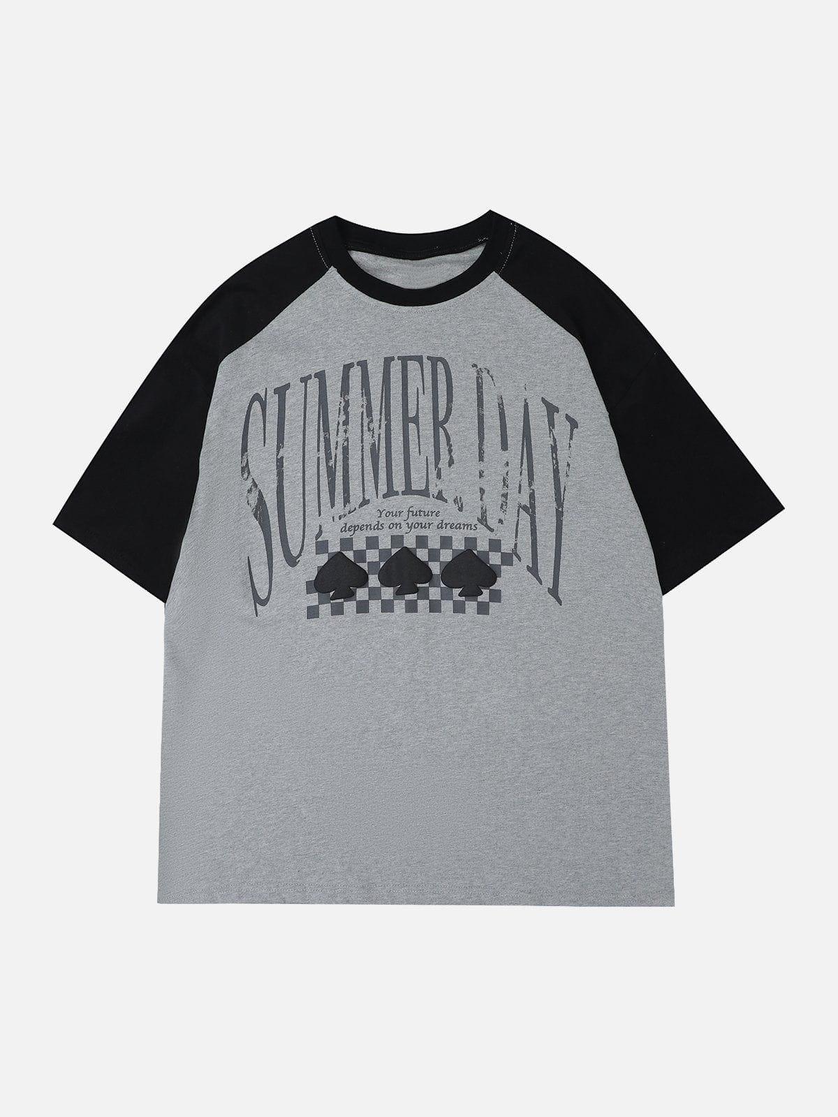 Stylish Concert Outfit: Love Heart Print Patchwork Tee for Music Lovers