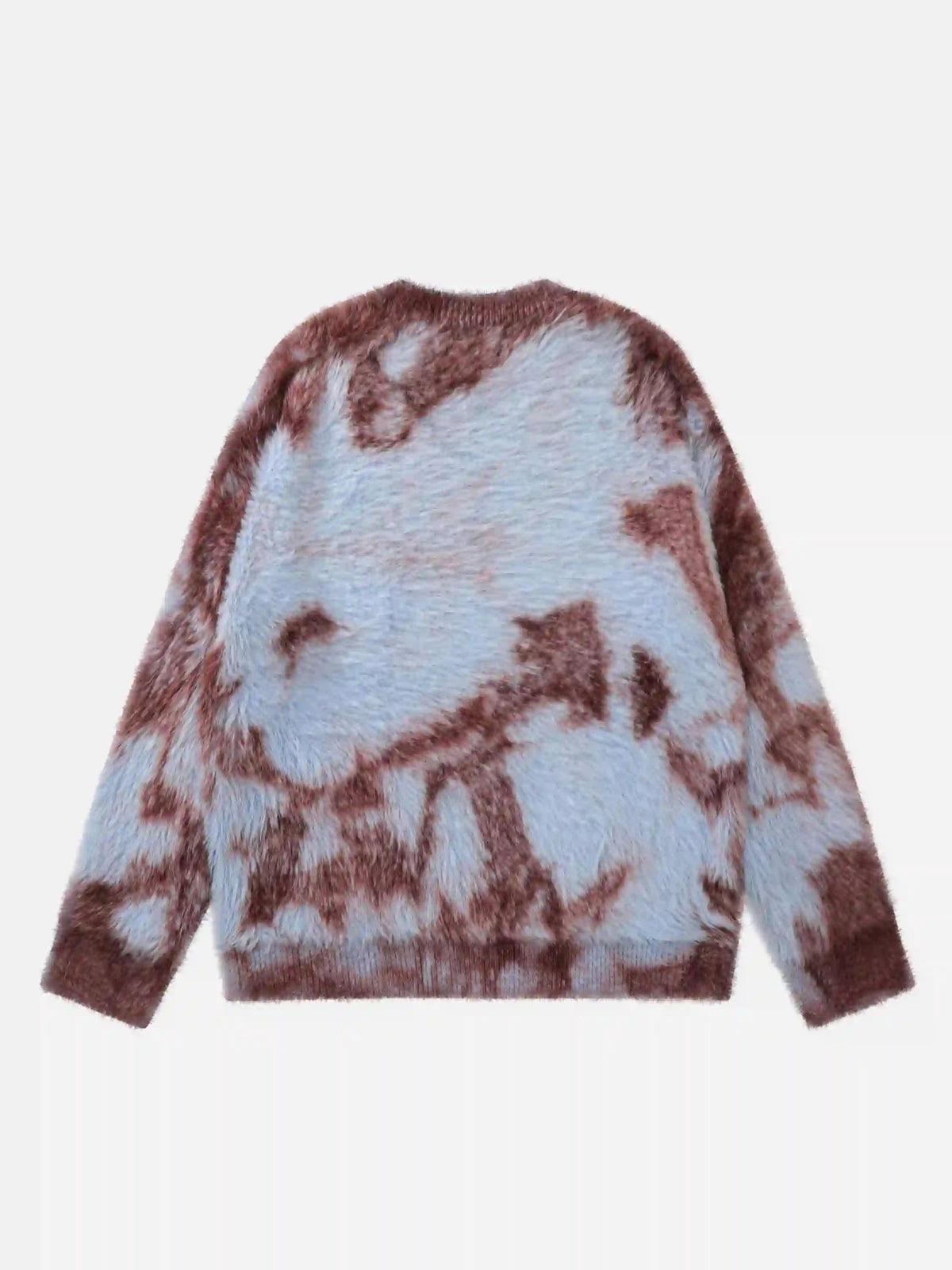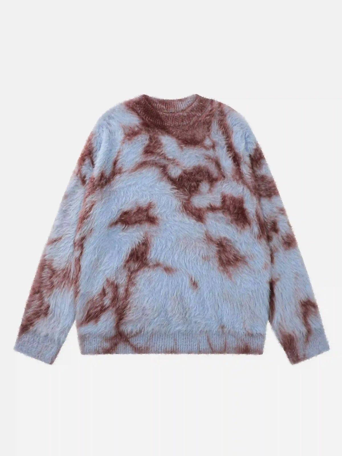 Break boundaries with this plush, fuzzy sweater that merges comfort and audacity in every fiber. The bold fusion of sky blue and rich brown creates a striking pattern, making it the centerpiece of any outfit ideas you conjure up. Available in sizes M, L, and XL, this sweater’s relaxed fit envelops you in softness, perfect for layering over your favorite streetwear fashion pieces. Whether you’re vibing with the urban jungle or chilling on a cool evening, this piece invites you to explore your style limits. Grab yours now and redefine your wardrobe essentials.