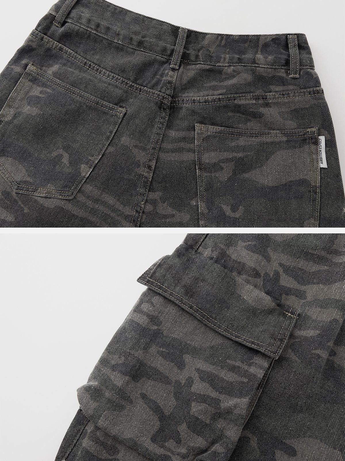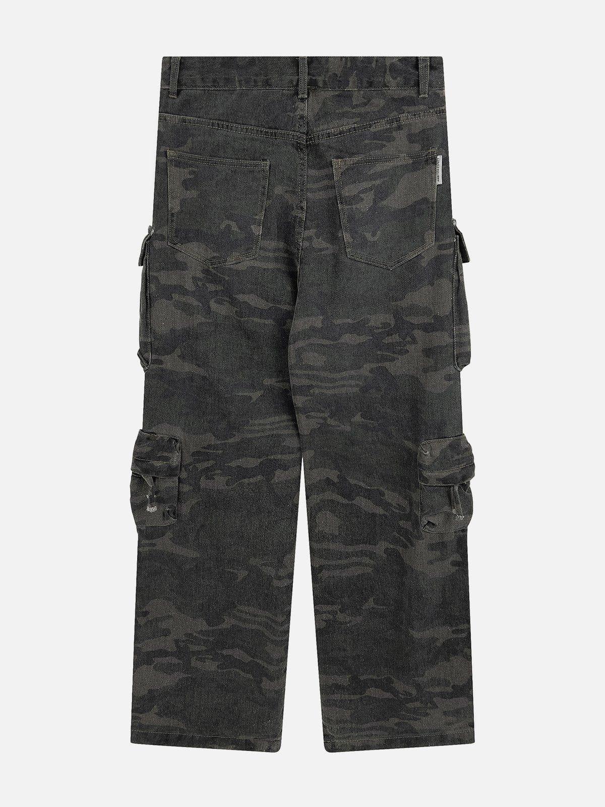 Revolutionize your streetwear game with these rugged, camo-print cargo pants, where functionality meets fearless style. The bold camo pattern demands attention and seamlessly blends with urban landscapes, while the multitude of pockets offers both utility and a nod to y2k influences. Designed in a versatile one-size fit, these pants cater to all, perfect for layering over your favorite sneakers or pairing with oversized tops for that ultimate street-savvy look. Own your space and redefine your outfit ideas with every step you take.