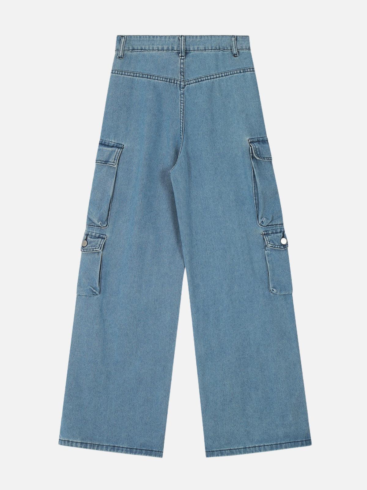 Break the mold with these wide-leg denim cargo pants that scream urban confidence and redefine streetwear fashion. The light blue wash exudes a vintage vibe, while the oversized pockets add practicality and edge, perfect for stashing essentials on the go. Designed in a versatile one-size fit, these pants drape effortlessly, making them a staple for those who dare to embrace the bold aesthetics of Y2K outfits. Pair them with a sleek tank top or an oversized hoodie to create your own standout look. Embrace the freedom of movement and style — these pants are your go-to for making every step a statement.