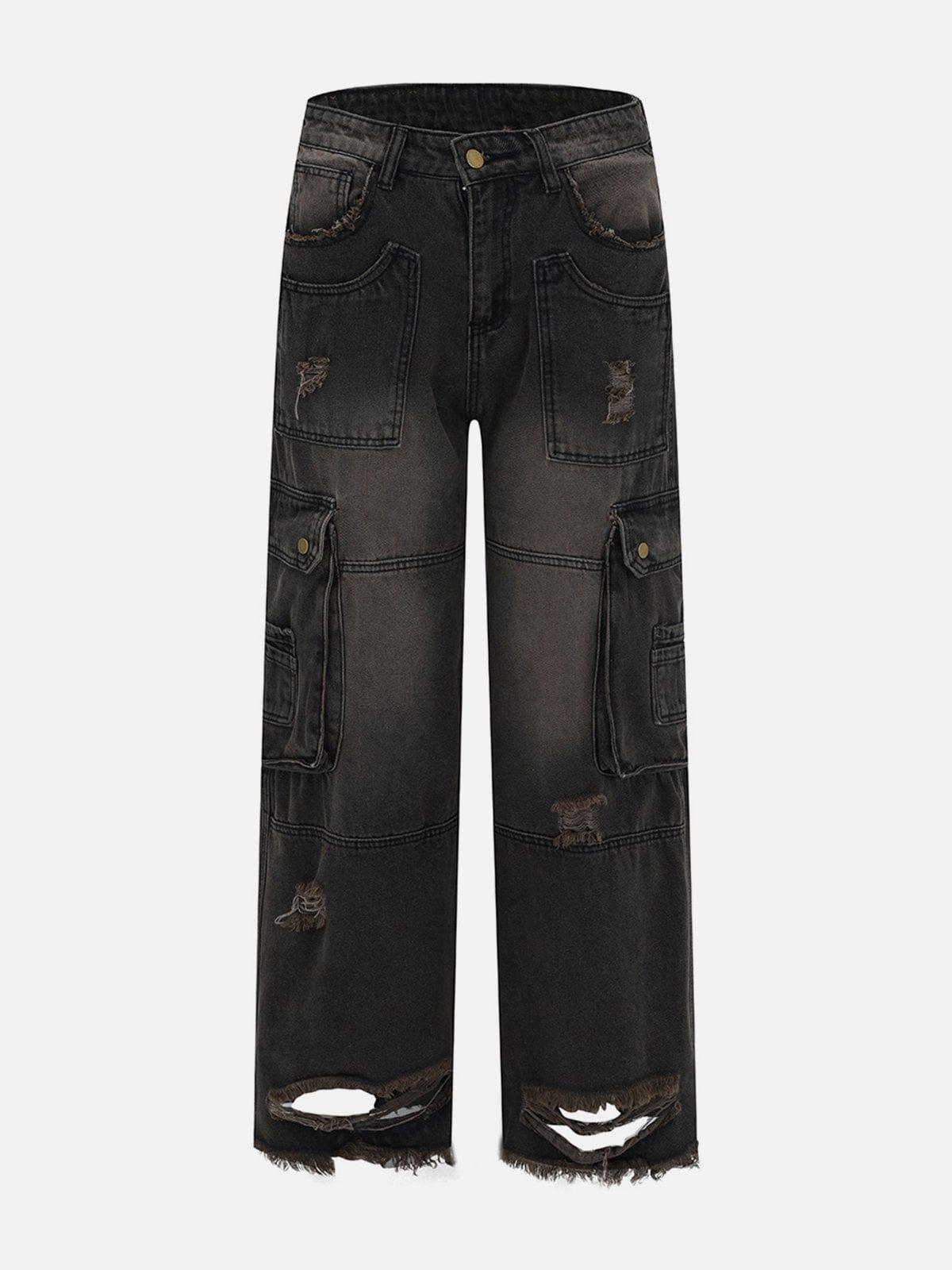 Transform your streetwear fashion game with these unapologetically edgy, distressed cargo pants. The dark, rugged texture and artful rips scream rebellion, while the oversized pockets add both flair and functionality. Designed in a versatile one-size-fits-most fit, these pants embrace the essence of freedom and individuality. Pair them with a fitted tee or an oversized hoodie for instant outfit inspo that speaks volumes. Own your look and set the streets ablaze with your fearless style.