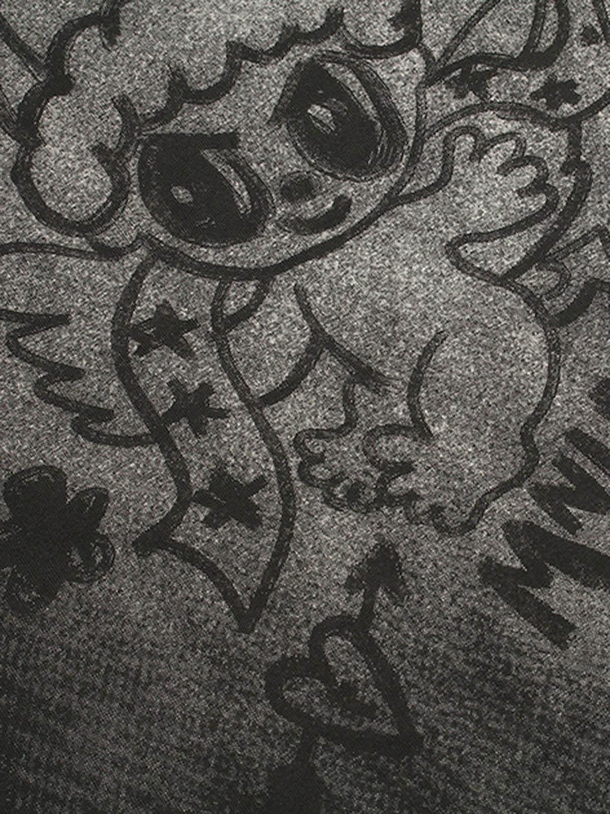 Embrace the edgy allure of urban streetwear with this tee, where playful graphics meet bold attitudes, perfect for making your mark this summer. Its striking design features a mischievous character surrounded by musical notes and celestial elements, adding a dynamic vibe to your look. Available in shades of gray, red, and purple, this piece offers versatility with a relaxed fit in medium, large, and extra-large sizes. The soft texture and vibrant print make it an ideal choice for layering or standing out on its own. Gear up for a day in the city and let this tee be your ultimate summer fashion inspo.