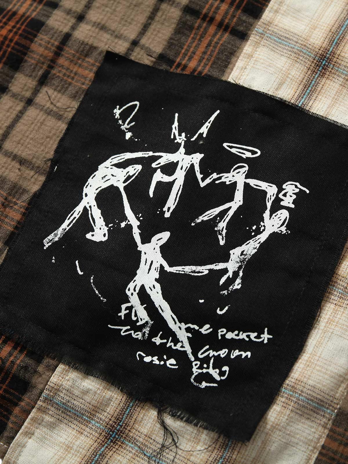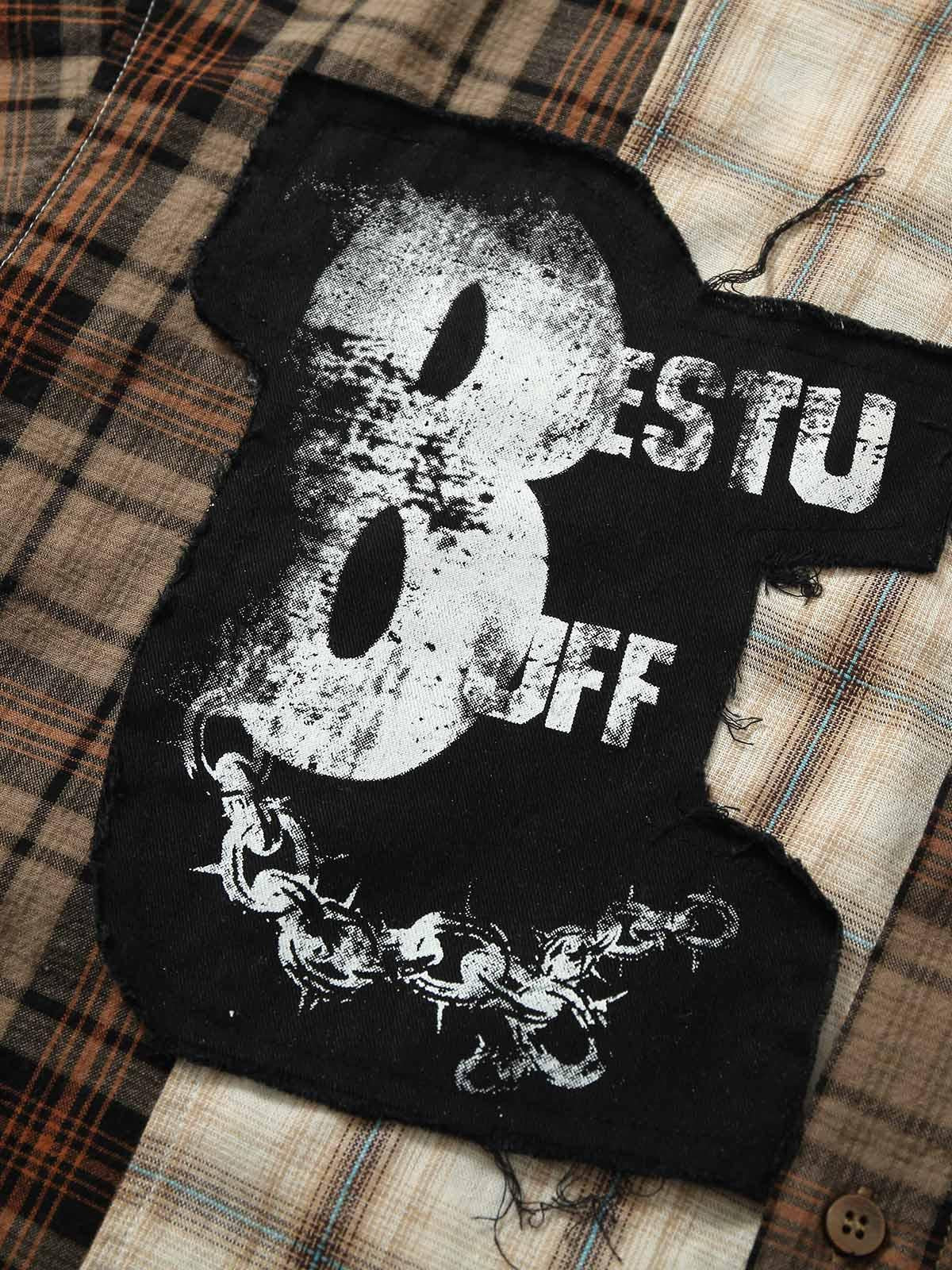 Stylish Concert Outfit: Patchwork Plaid Short-sleeve Shirt for Music Lovers