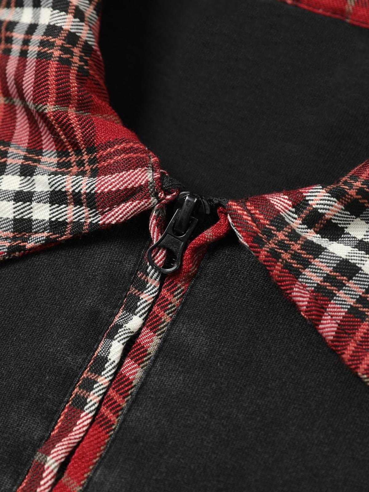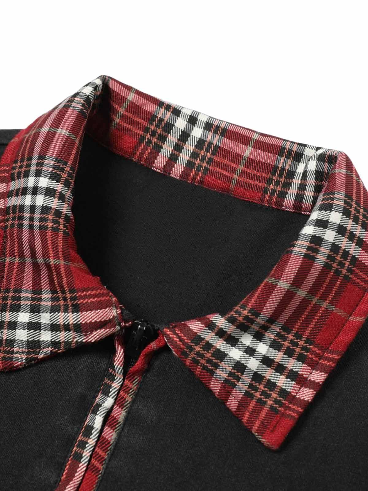 Revamp your streetwear fashion with this standout piece, featuring a bold red plaid collar that commands attention against its sleek black backdrop. The soft, textured fabric ensures all-day comfort, while the relaxed fit offers effortless style in sizes ranging from M to 2XL. Perfect for layering or wearing solo, this tee seamlessly blends into any outfit inspo, making it the ultimate choice for those who dare to redefine y2k outfits. Grab yours and set the trend.