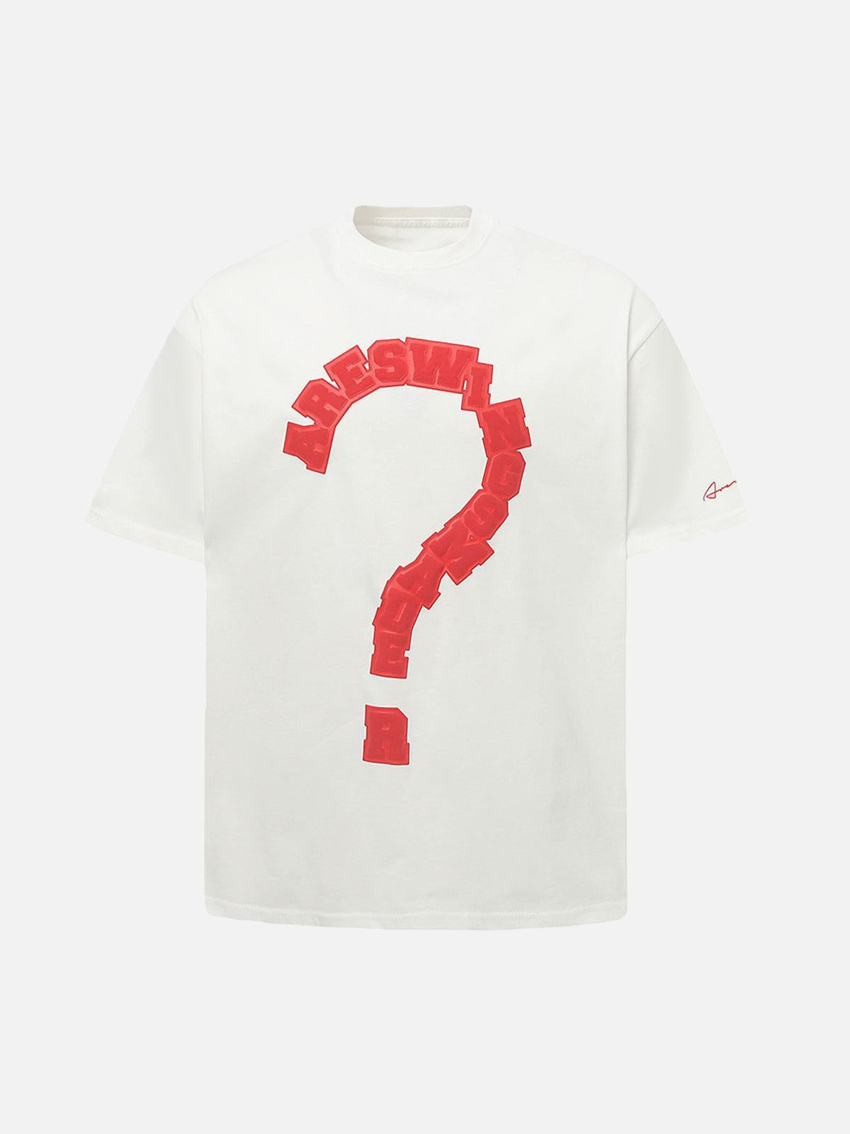 Challenge the ordinary with this striking tee that boldly asks questions with its vibrant red question mark graphic, set against a clean white canvas. The soft texture ensures a relaxed fit, making it perfect for summer fashion inspo, whether you choose to pair it with sleek black jeans or your favorite streetwear shorts. Available in sizes M, L, and XL, this piece offers versatility and comfort for any urban adventure. Embrace the unexpected and let your style do the talking.
