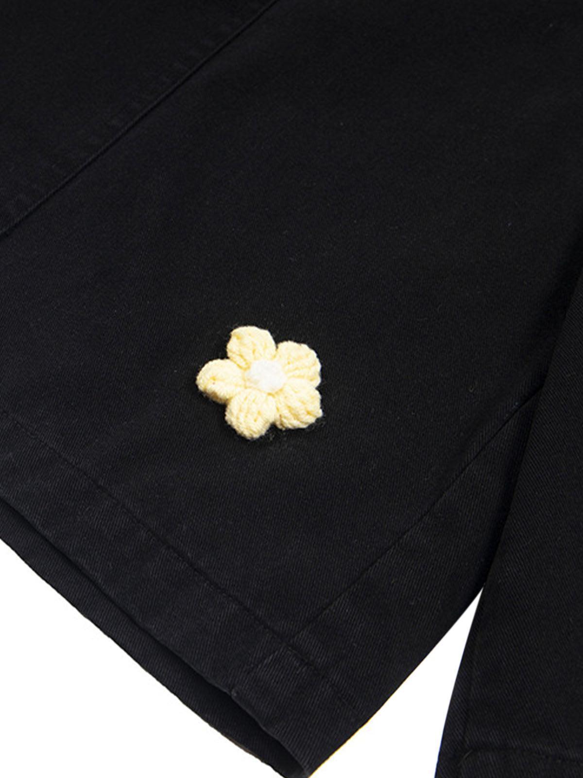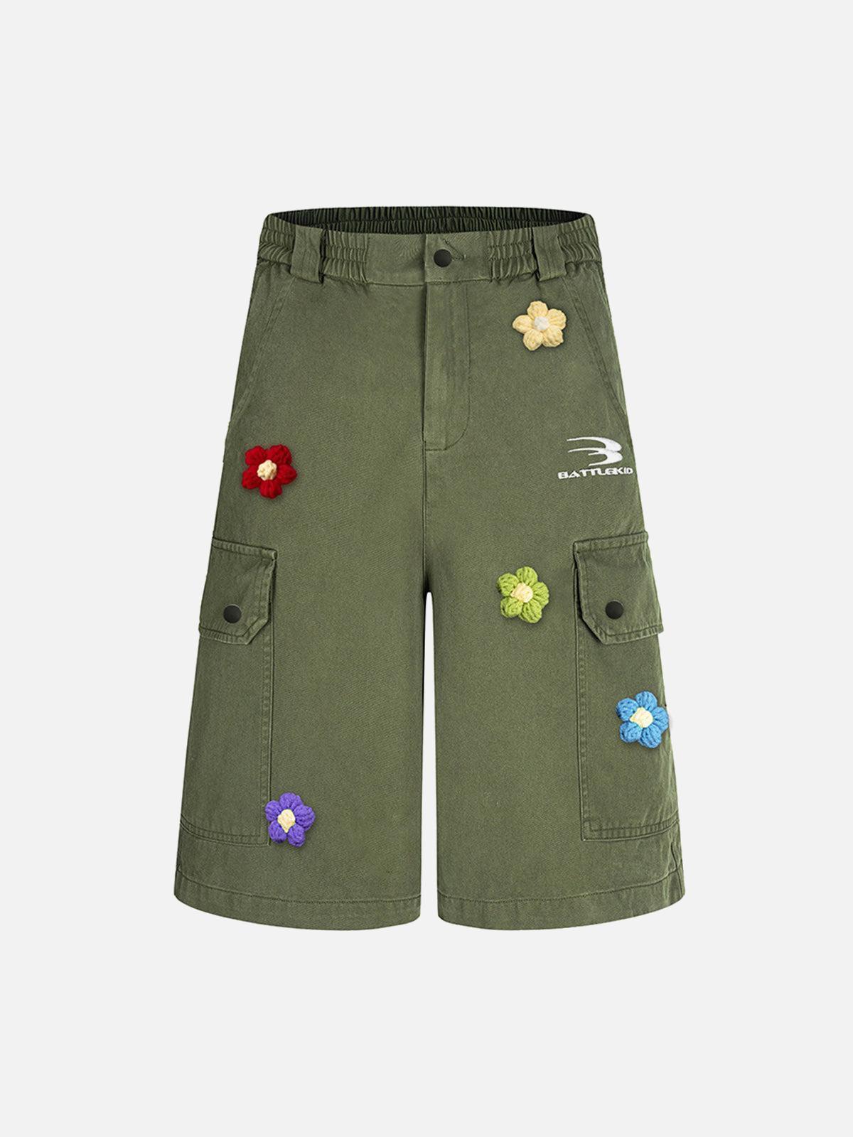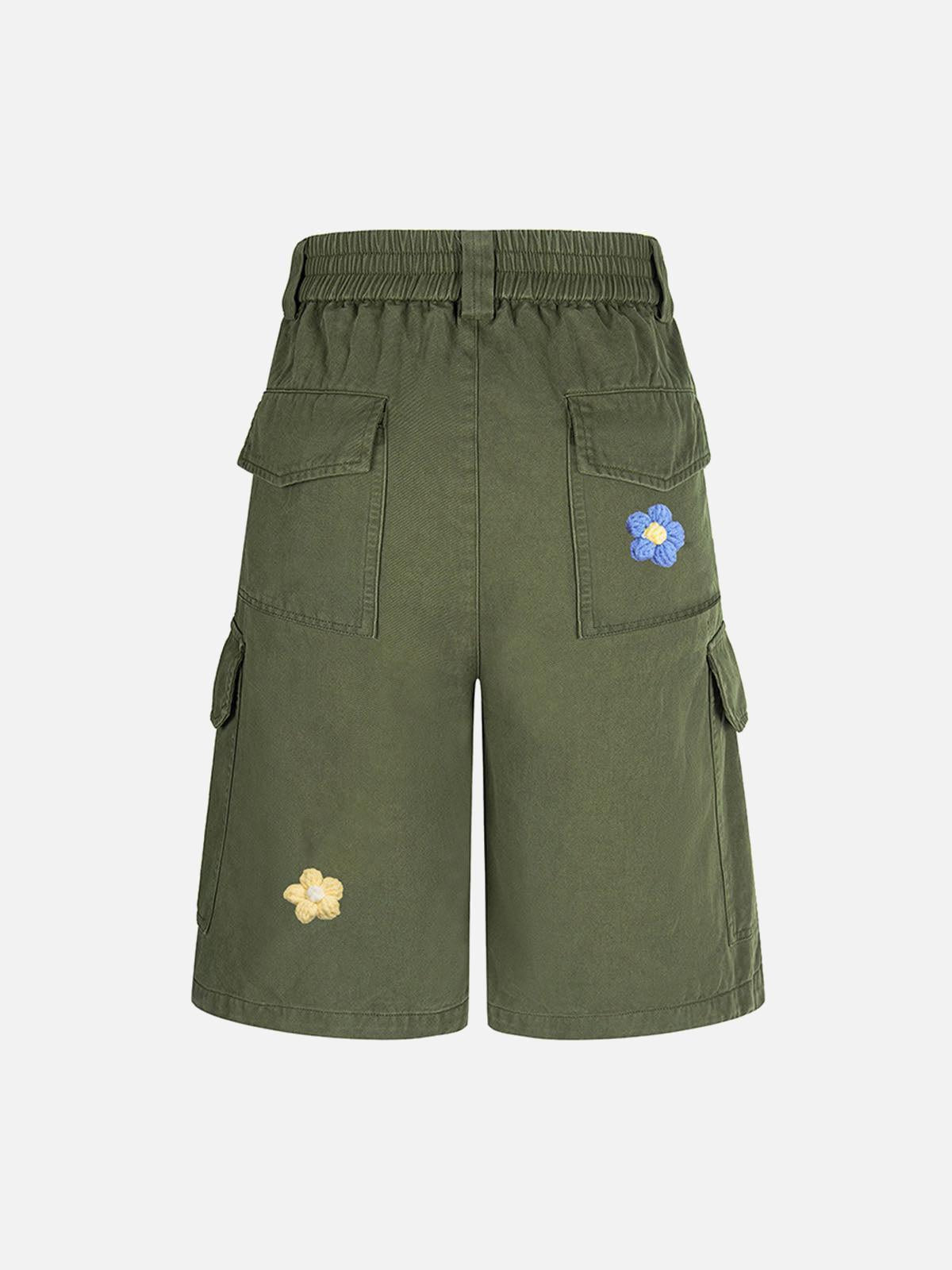 Stand out from the crowd with these vibrant cargo shorts, a playful twist on streetwear essentials. The bold floral embroidery pops against the deep navy backdrop, offering a fresh take on summer fashion. With a relaxed fit and spacious pockets, they blend style and utility, perfect for a dynamic urban lifestyle. Available in sizes S to XL, these shorts cater to every trendsetter’s needs, whether you’re rocking them in navy or army green. Pair them with your favorite sneakers for an effortlessly cool summer outfit. Elevate your summer style with these unique shorts.