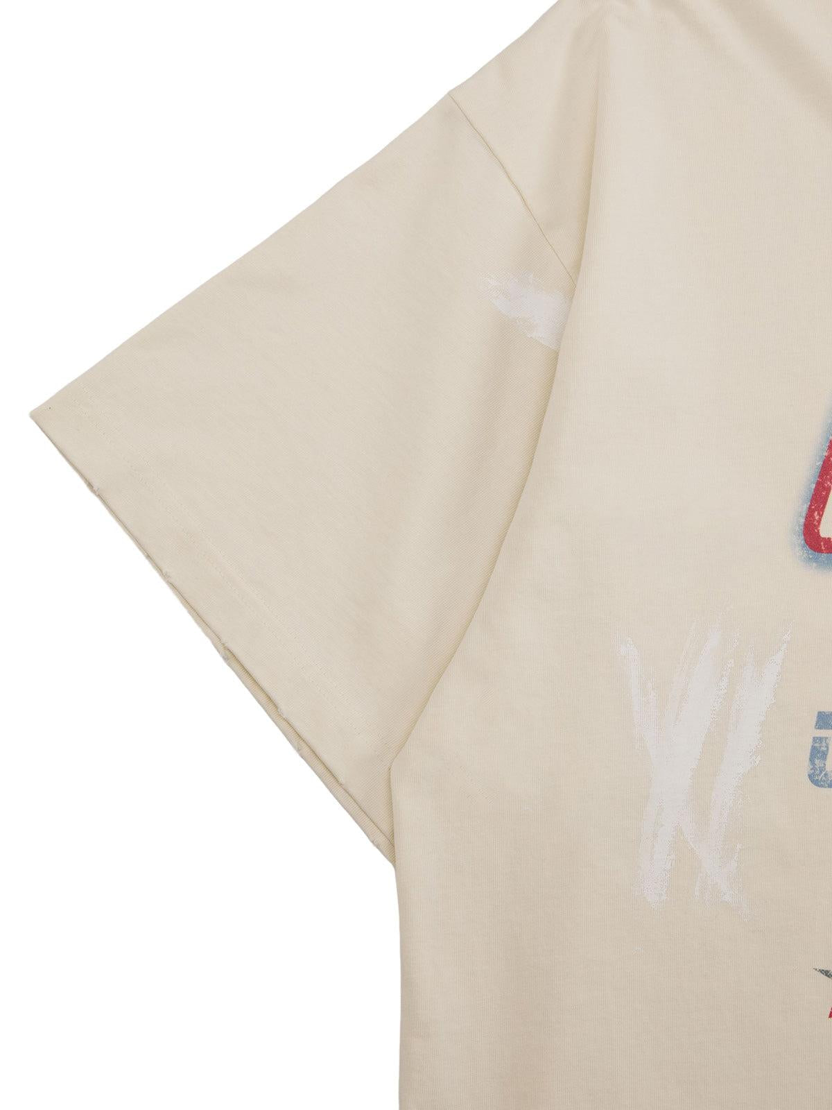 Turn heads with this urban-inspired tee, where bold graphics meet the perfect blend of comfort and edge. The dynamic red and blue design bursts across a soft apricot canvas, embodying an effortlessly cool summer style. Available in sizes S through XL, this piece offers a relaxed fit that pairs seamlessly with your go-to jeans or shorts. Elevate your summer outfit with a touch of streetwise flair that keeps you ahead of the fashion curve. Get ready to redefine your wardrobe’s vibe.
