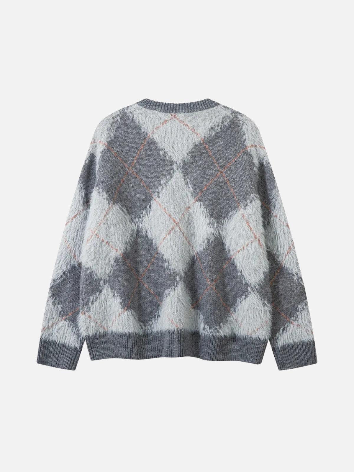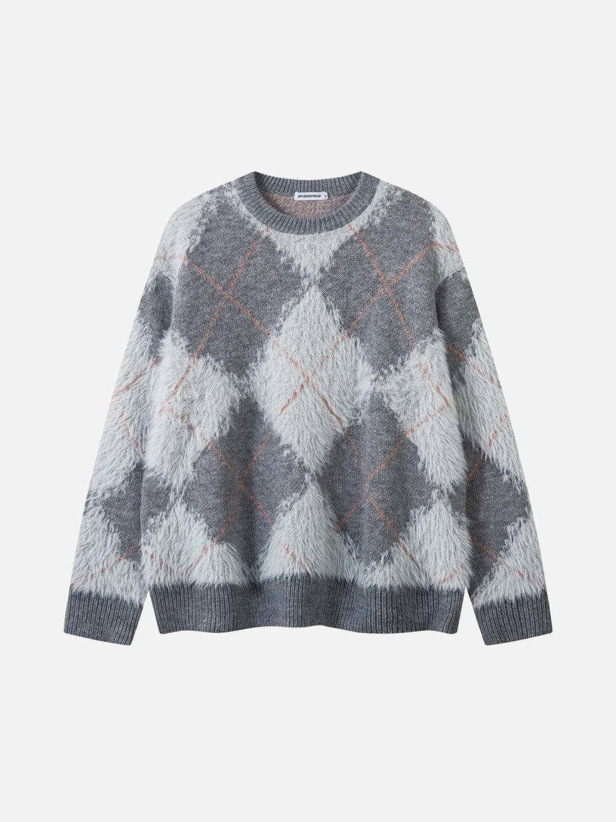 Defy the ordinary with this bold and edgy pullover, where vintage argyle meets street-savvy texture. The dark blue and gray hues intertwine with a pop of pink stitching, creating a visual masterpiece that’s both retro and futuristic. Its plush, fuzzy texture and relaxed fit make it perfect for layering over your favorite tees, whether you’re exploring the city or chilling with friends. Available in sizes from S to XL, this piece is designed for those who live to stand out. Pair it with your favorite y2k outfits and let the streets be your runway—grab yours now and redefine your streetwear fashion game.