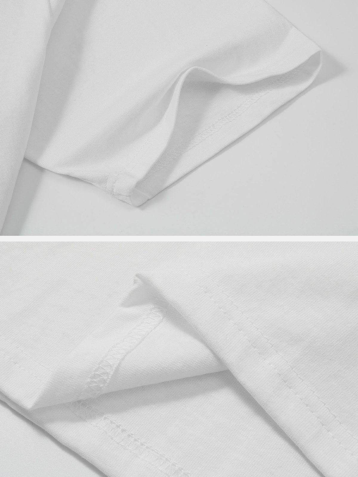 Break the rules of ordinary with a tee that speaks volumes in every stitch. This bold graphic design wraps around the back, exuding a fearless vibe that complements any urban setting. Available in edgy shades like white, light gray, dark gray, navy blue, black, and green, this piece fits seamlessly into your summer style rotation. With sizes ranging from S to XL, you’re guaranteed a fit that feels as good as it looks. Pair it with distressed jeans or cargo shorts for an effortlessly cool summer outfit. Own your look with confidence and let this tee do the talking.