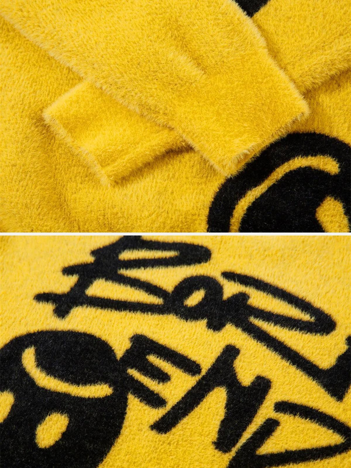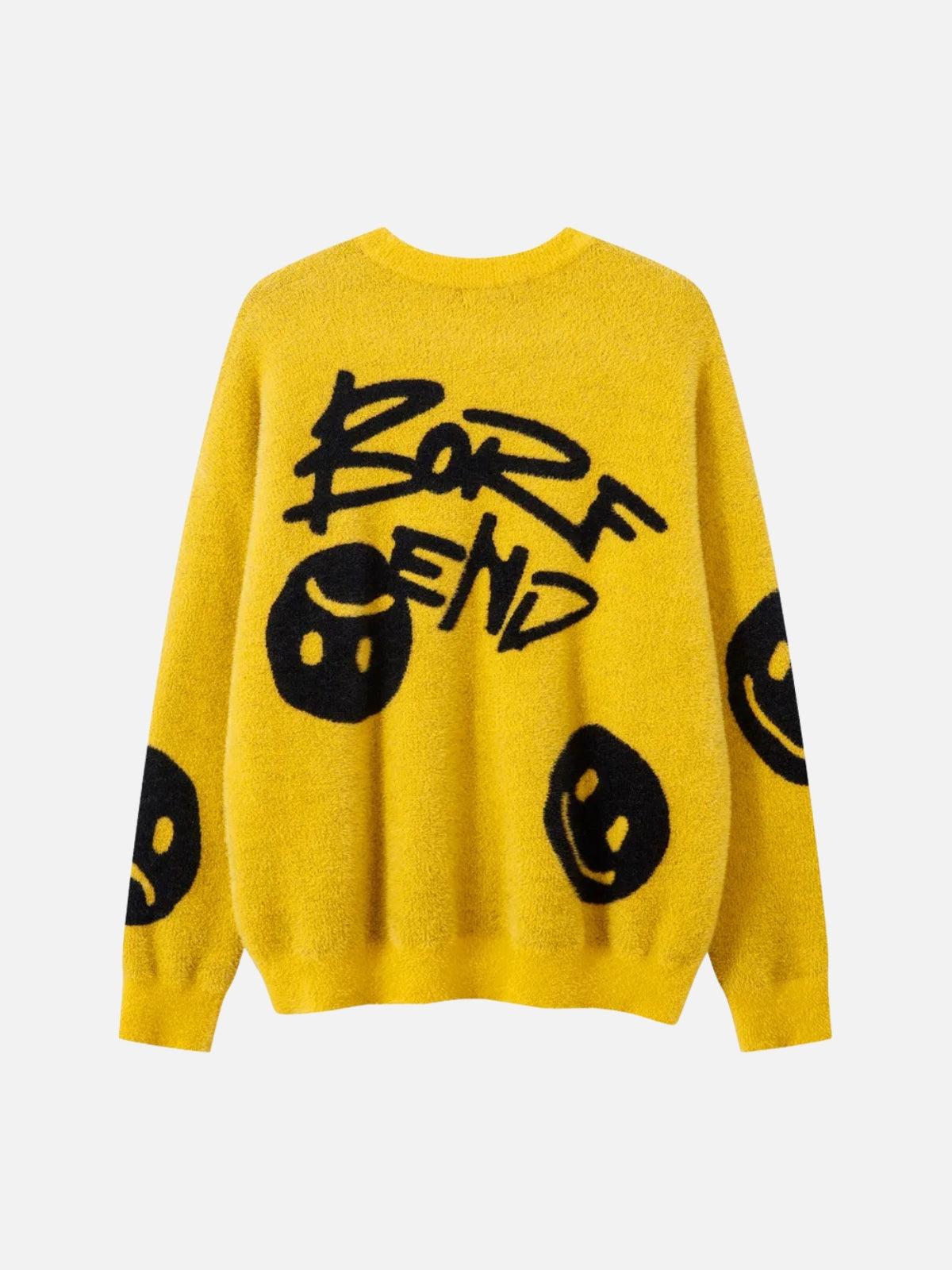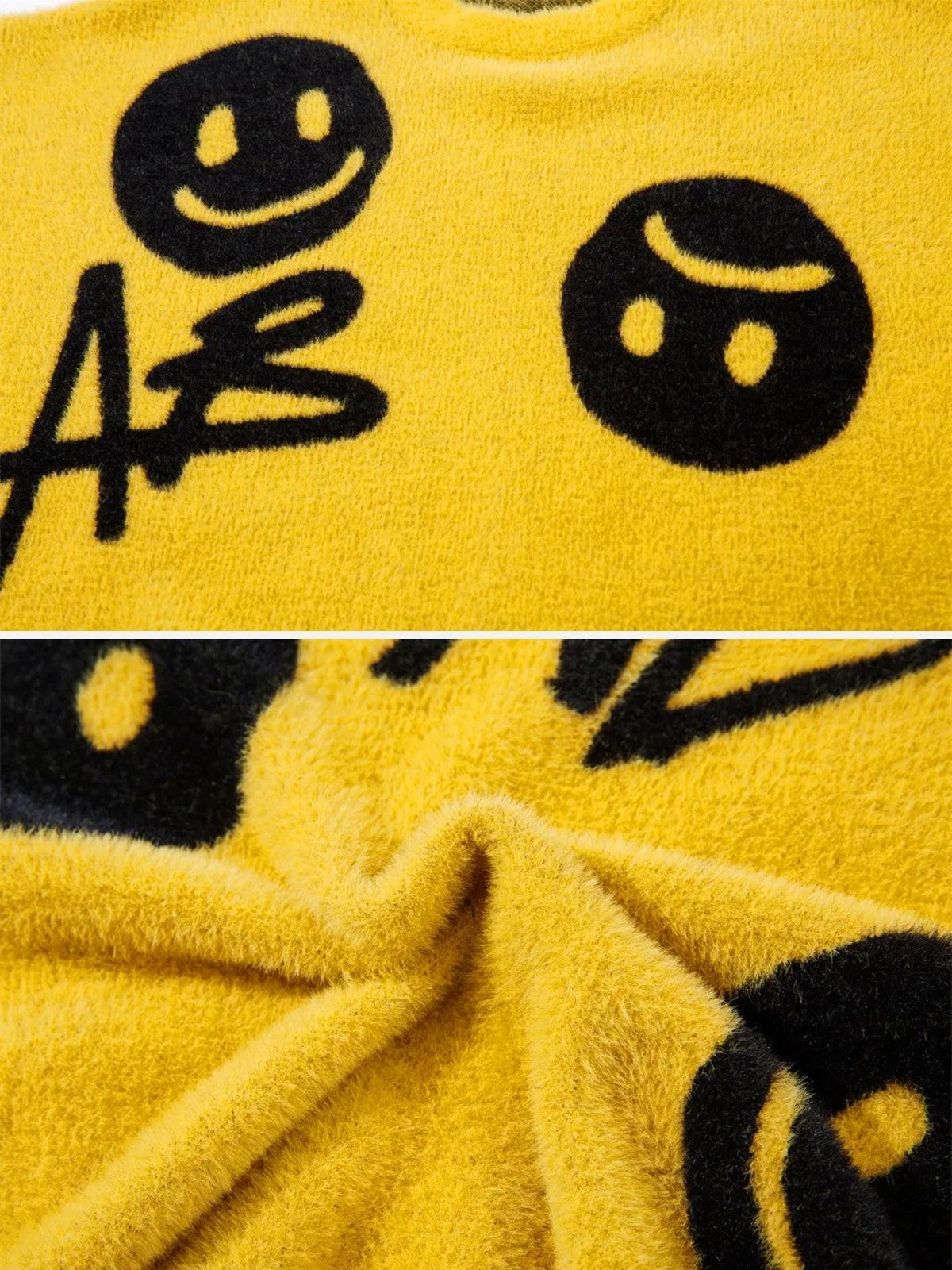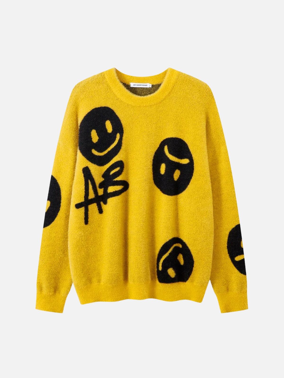 Turn heads with an audacious twist on classic streetwear, where bold black meets playful yellow in a sea of oversized smiley faces, each exuding a vibe that’s both nostalgic and fiercely modern. The soft, cozy texture of this sweater promises comfort without compromising on style, while its relaxed fit makes it a versatile addition to any urban wardrobe. Whether you’re layering for cool nights or seeking standout y2k outfit ideas, this piece is available in sizes S, M, L, and XL to ensure the perfect fit. Embrace your individuality and let your outfit do the talking.