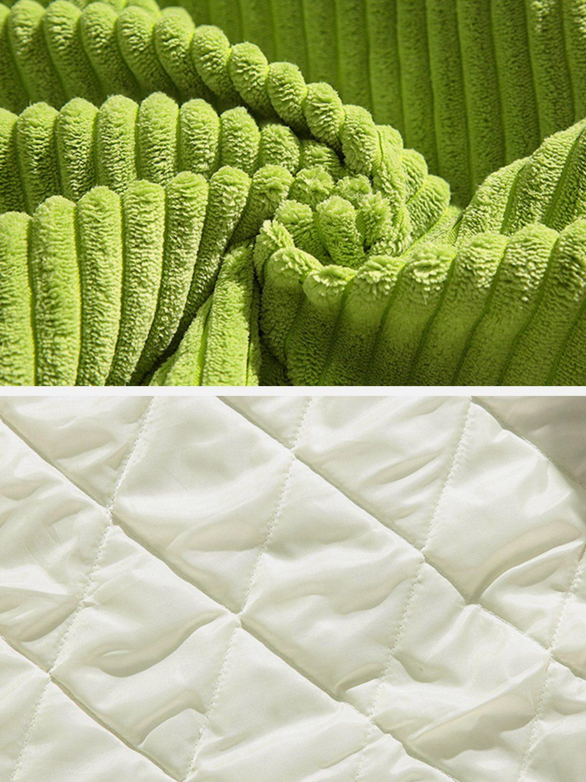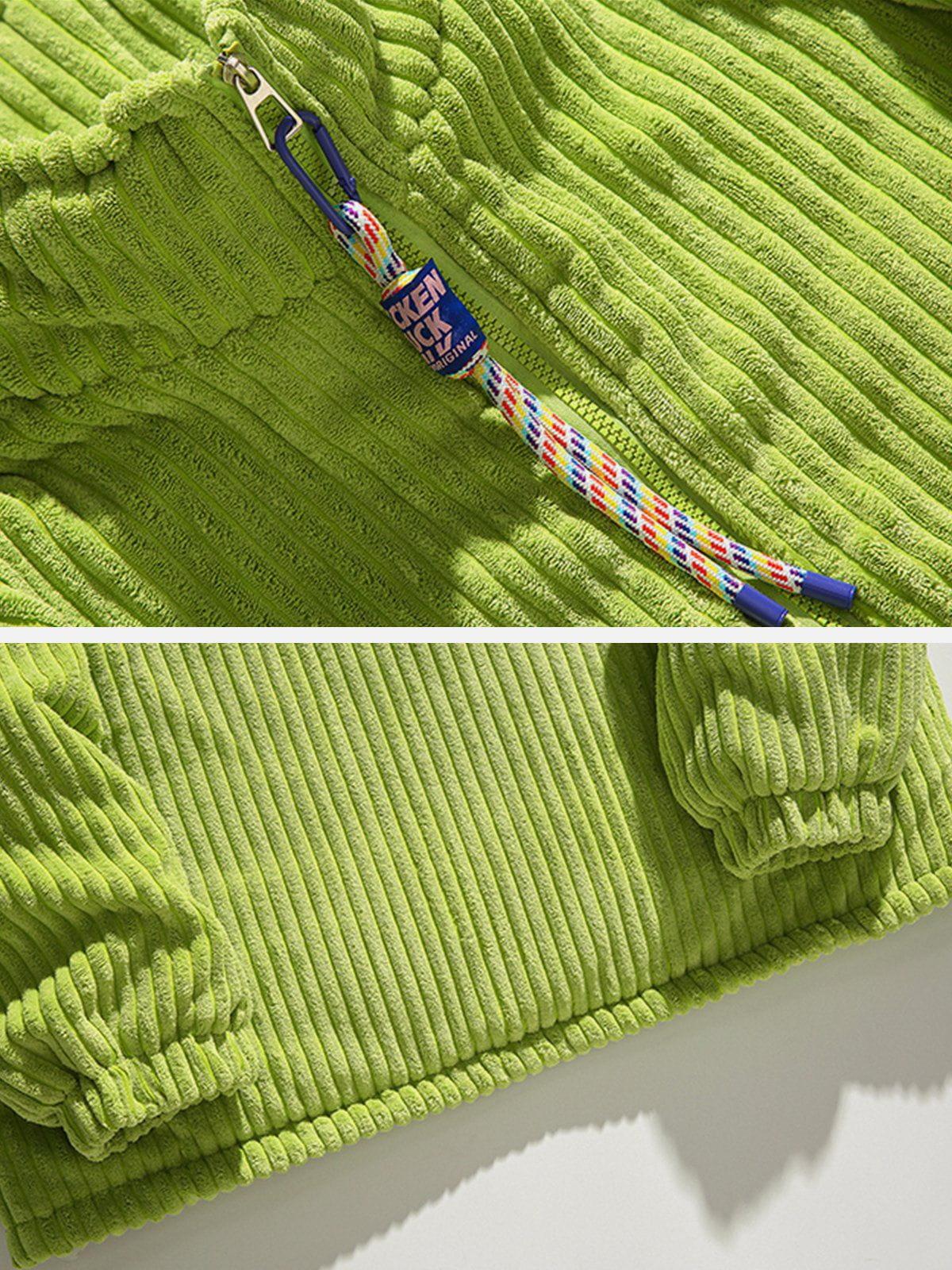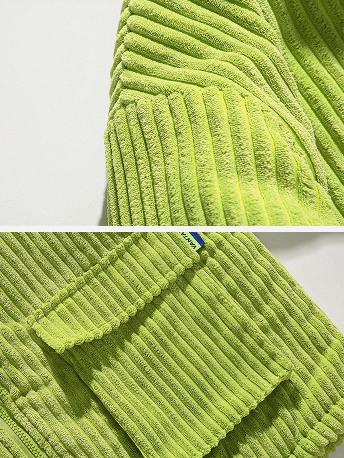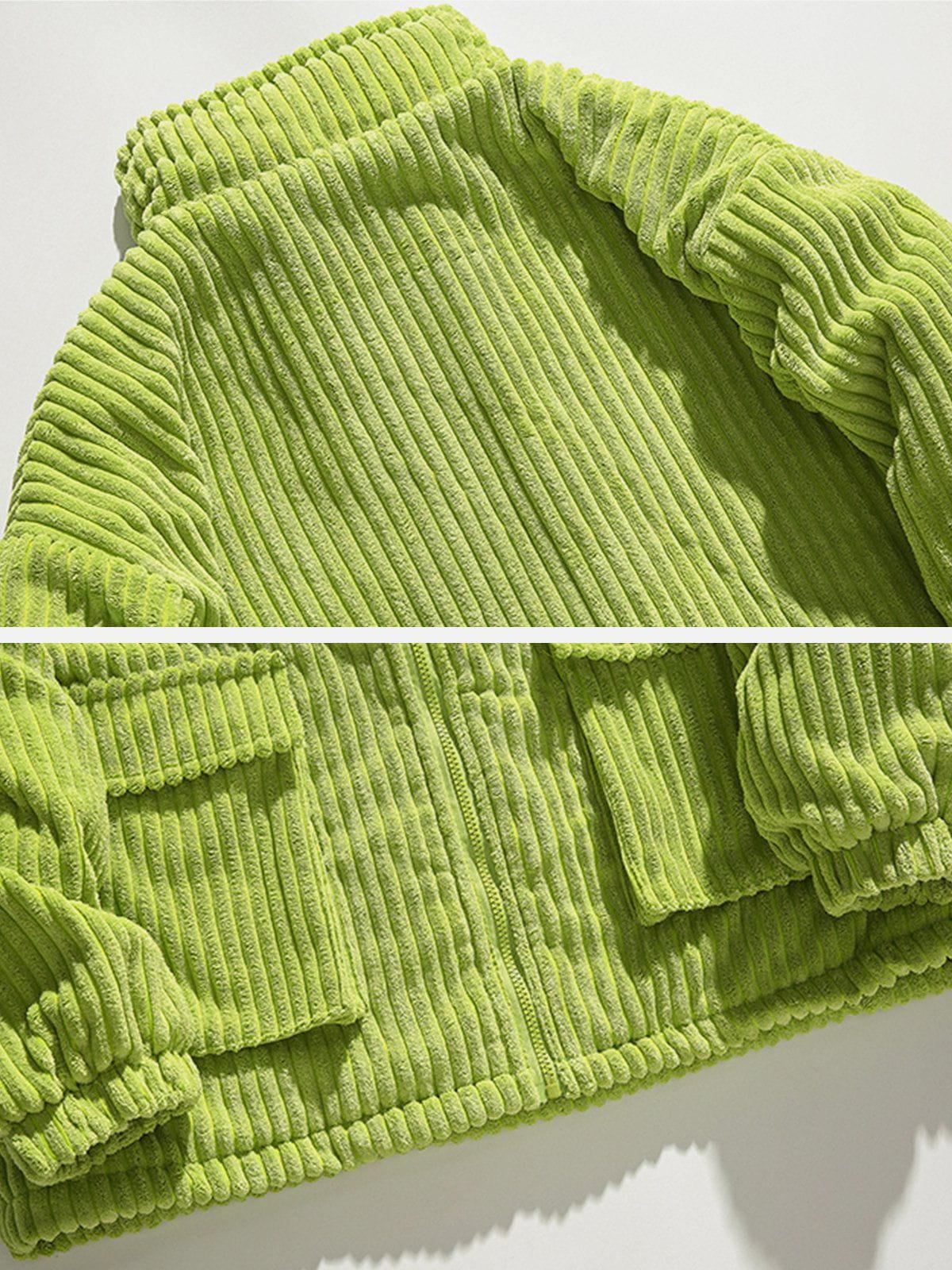 Vibrant and textured, this bold piece is your ticket to turning heads in any urban landscape. The rich green hue, complemented by plush corduroy ridges, creates a striking visual and tactile experience that’s as comfortable as it is eye-catching. With its relaxed fit available in sizes from S to XL, this jacket offers versatility in styling—whether layered over a sleek tee or paired with your favorite jeans, it’s ready to elevate your streetwear fashion game. Also available in earthy beige and classic black, it effortlessly adapts to your mood and wardrobe. Zip into this statement piece and redefine your outfit ideas with a touch of fearless flair.
