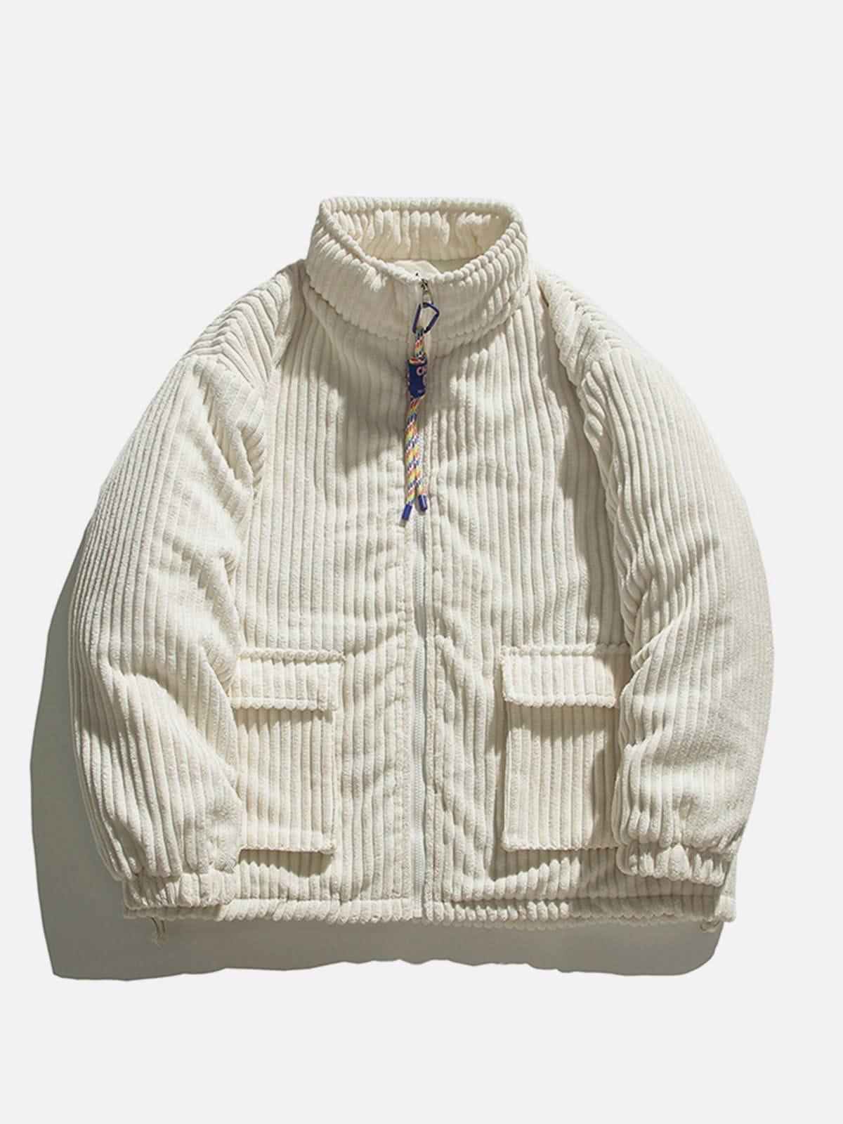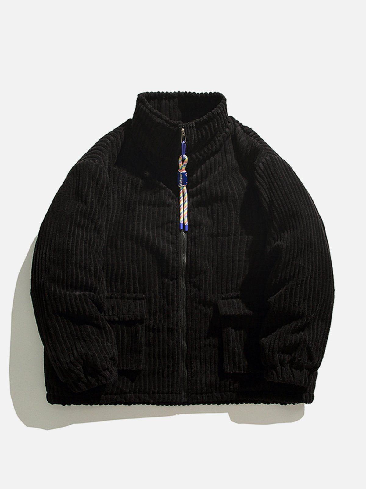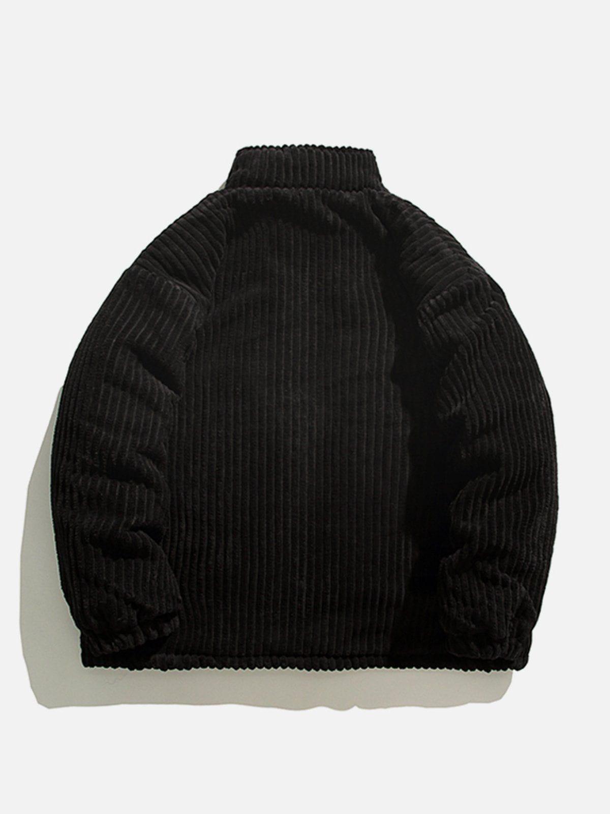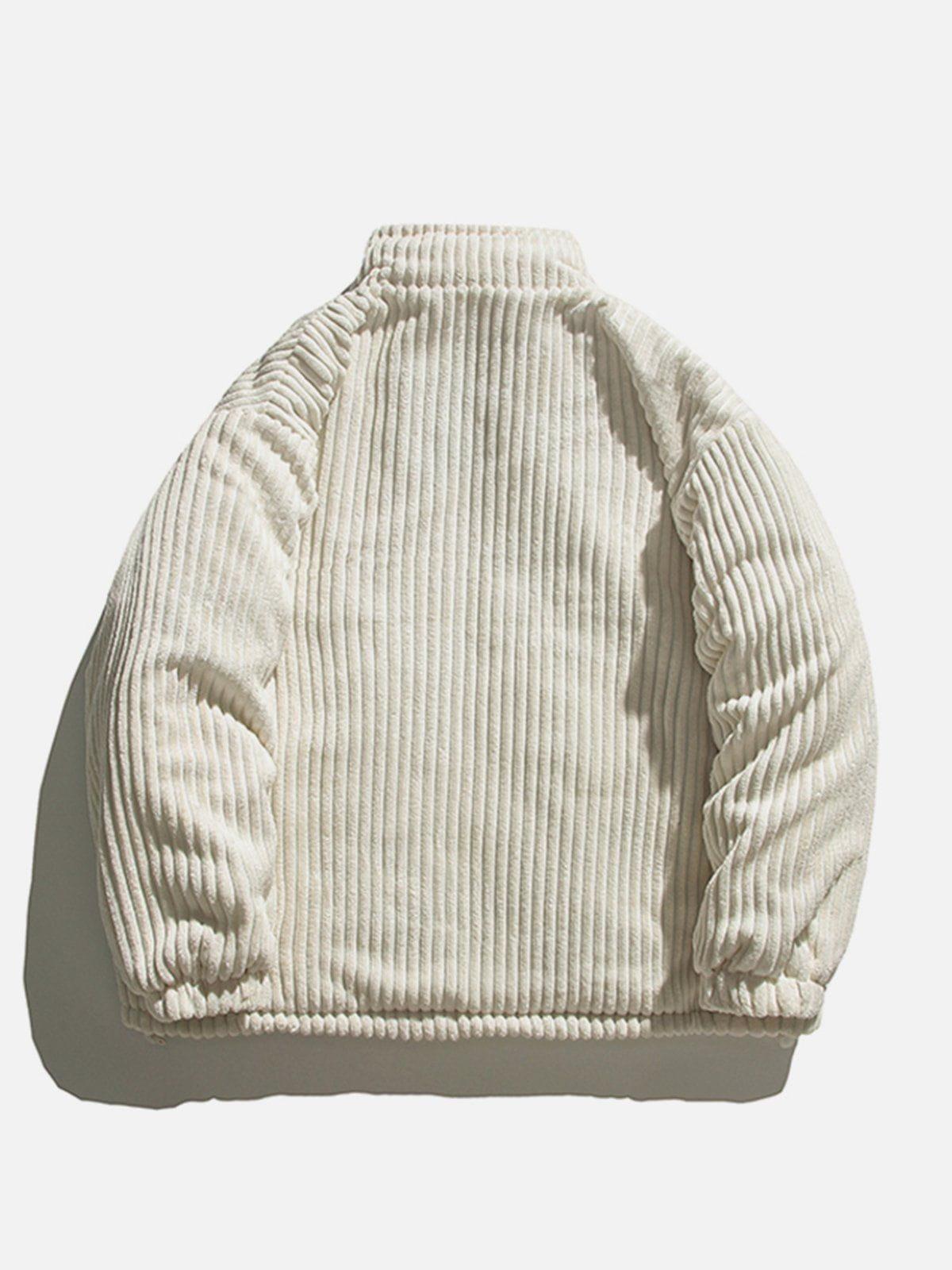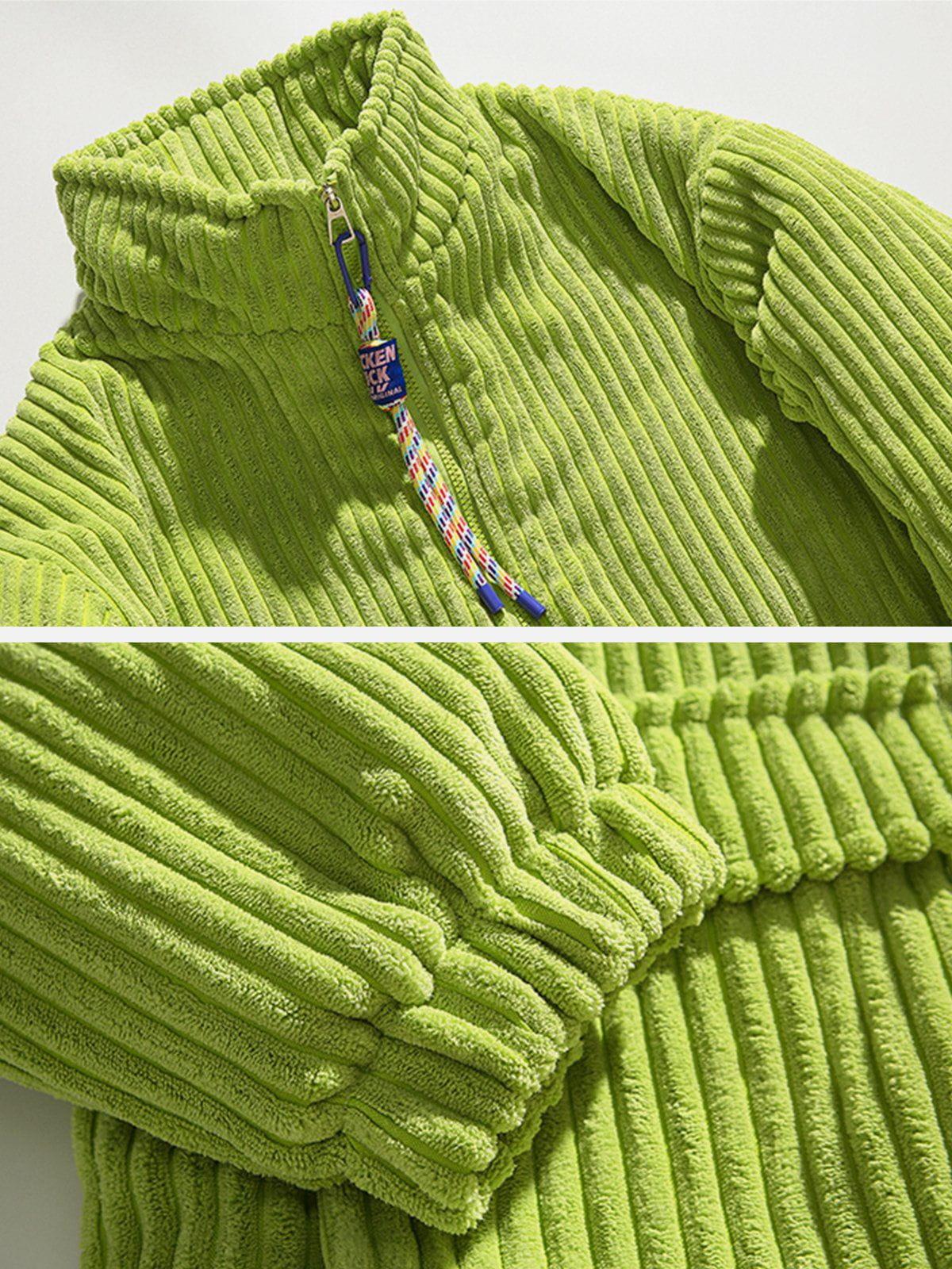 Vibrant and textured, this bold piece is your ticket to turning heads in any urban landscape. The rich green hue, complemented by plush corduroy ridges, creates a striking visual and tactile experience that’s as comfortable as it is eye-catching. With its relaxed fit available in sizes from S to XL, this jacket offers versatility in styling—whether layered over a sleek tee or paired with your favorite jeans, it’s ready to elevate your streetwear fashion game. Also available in earthy beige and classic black, it effortlessly adapts to your mood and wardrobe. Zip into this statement piece and redefine your outfit ideas with a touch of fearless flair.