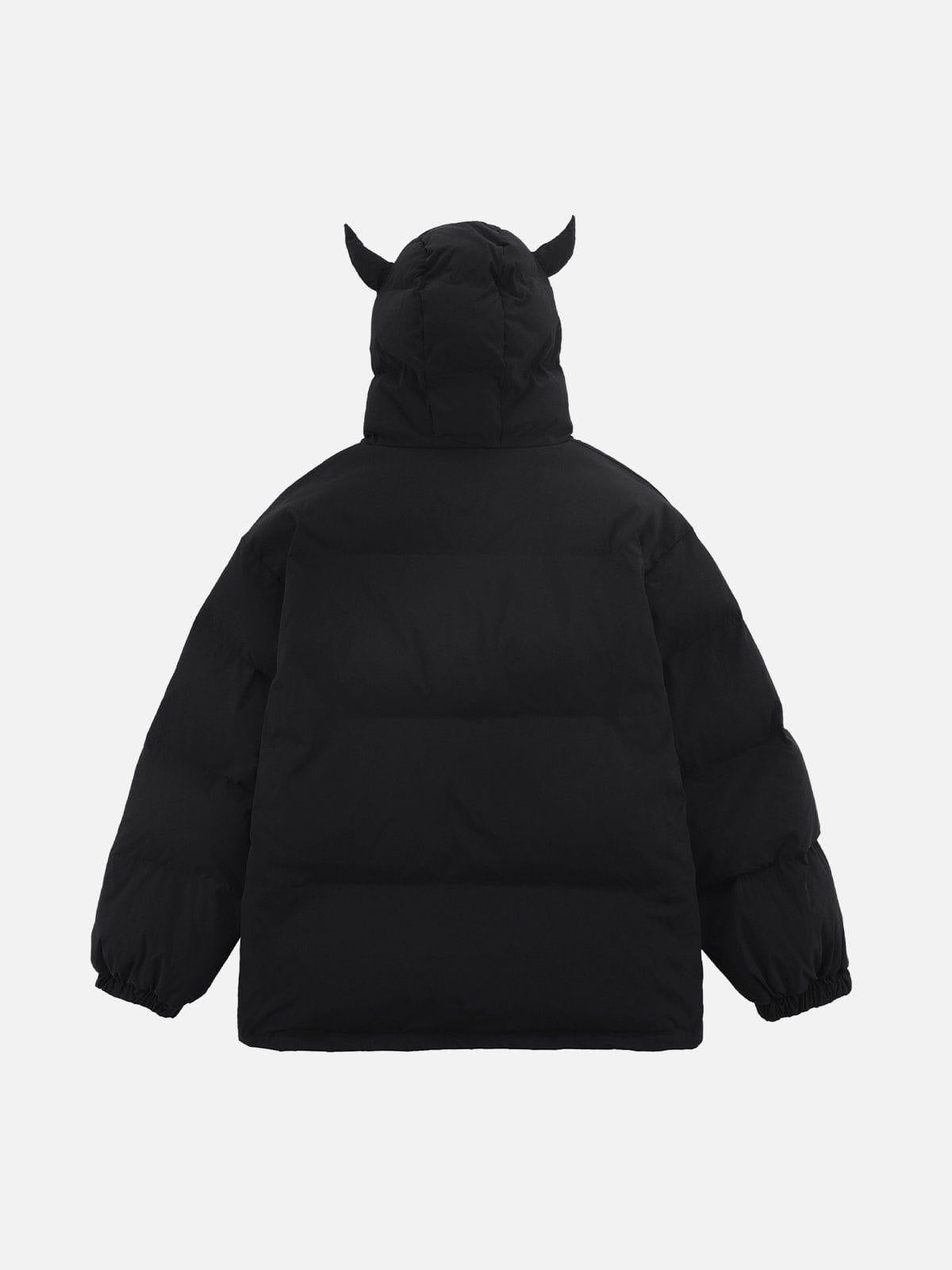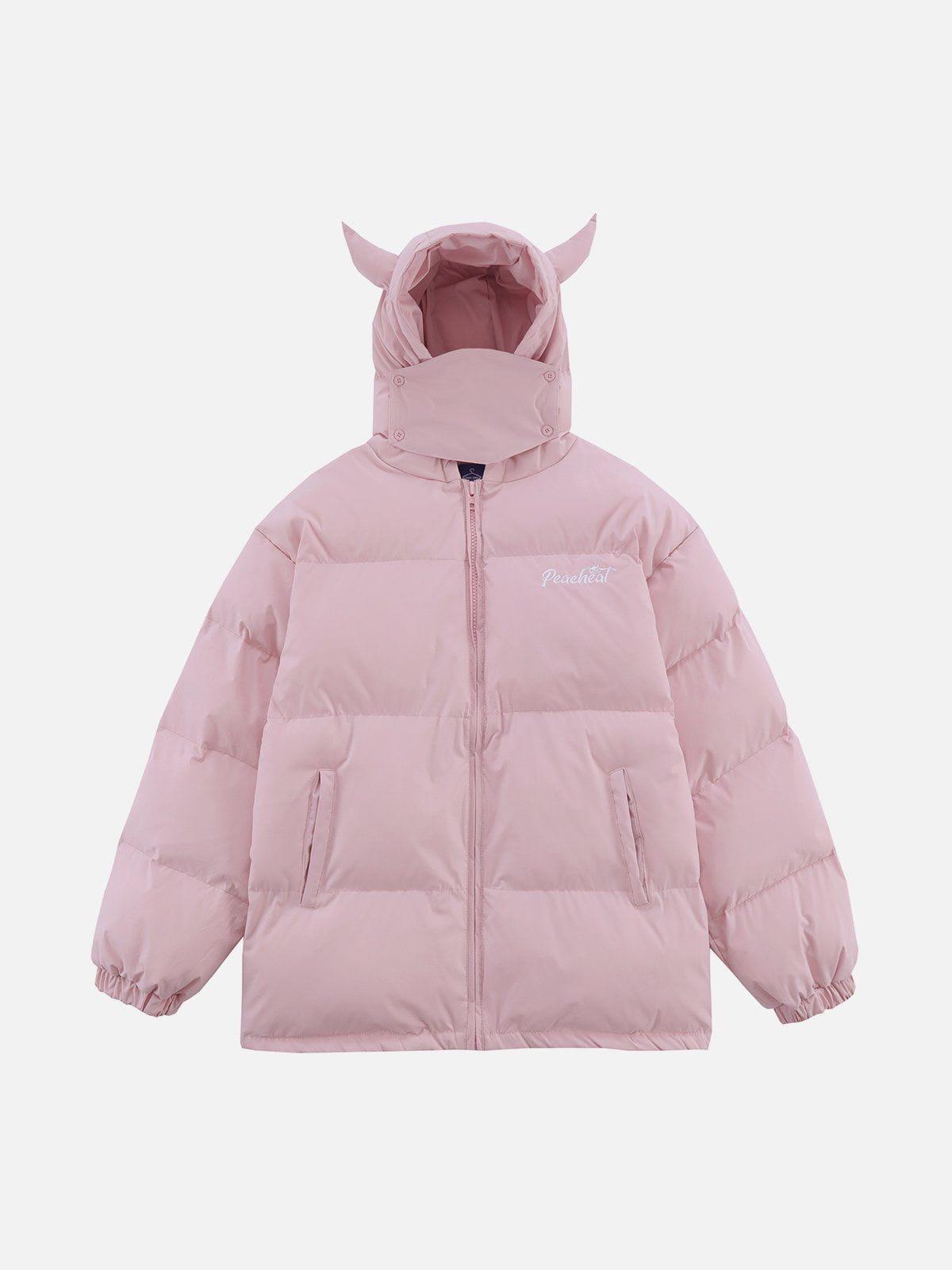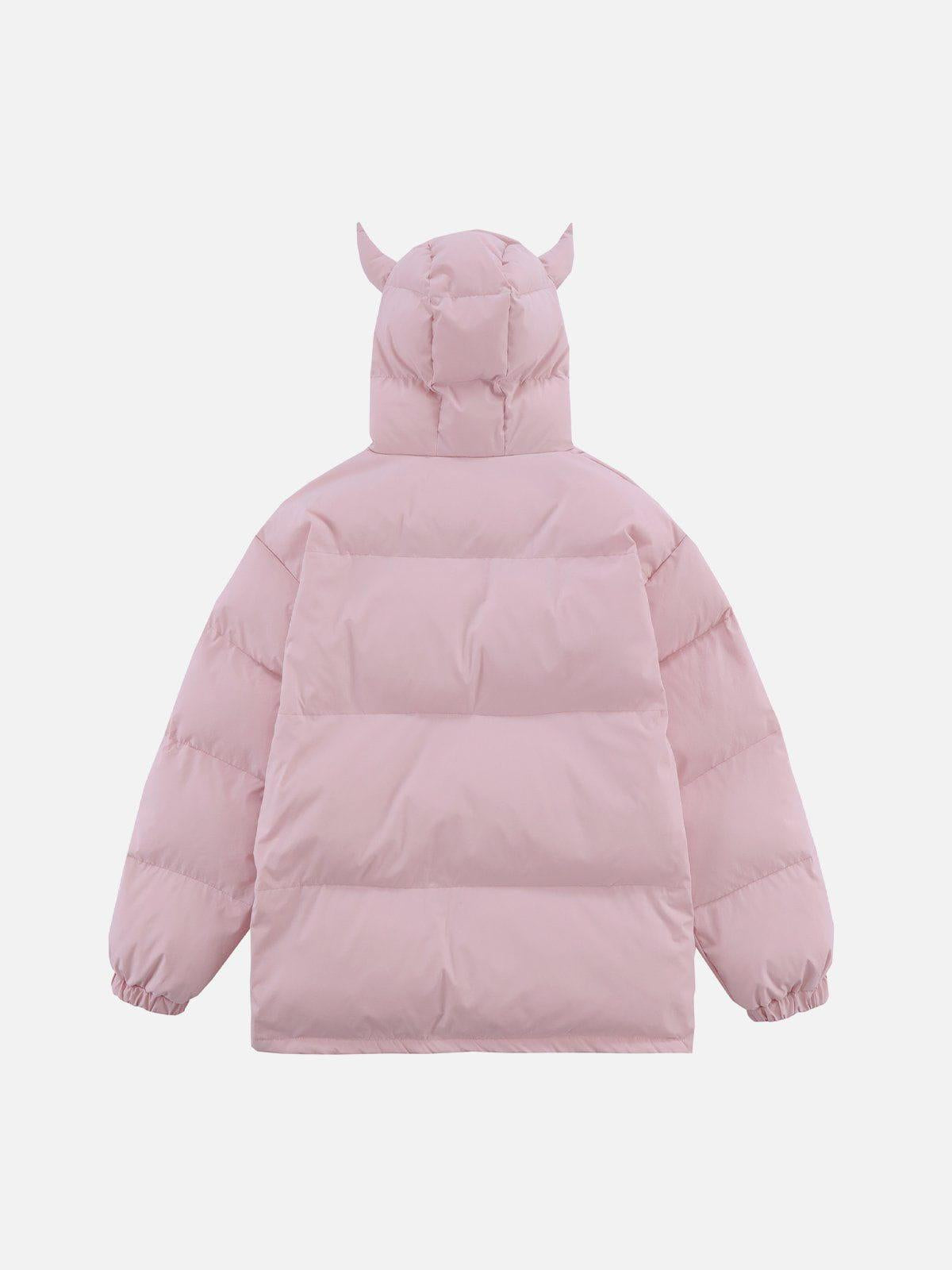 Embrace the playful edge of streetwear fashion with this puffer jacket featuring cheeky ear accents that set you apart from the crowd. Available in a soft pink that adds a touch of urban whimsy or a sleek black for a more intense vibe, this jacket offers both personality and warmth. Its plush texture and oversized fit ensure comfort across sizes S, M, and L, making it perfect for layering up in style. Pair it with your favorite distressed jeans or a sleek skirt for endless outfit inspo. Add this bold piece to your wardrobe and redefine your y2k outfits with a dash of daring flair.