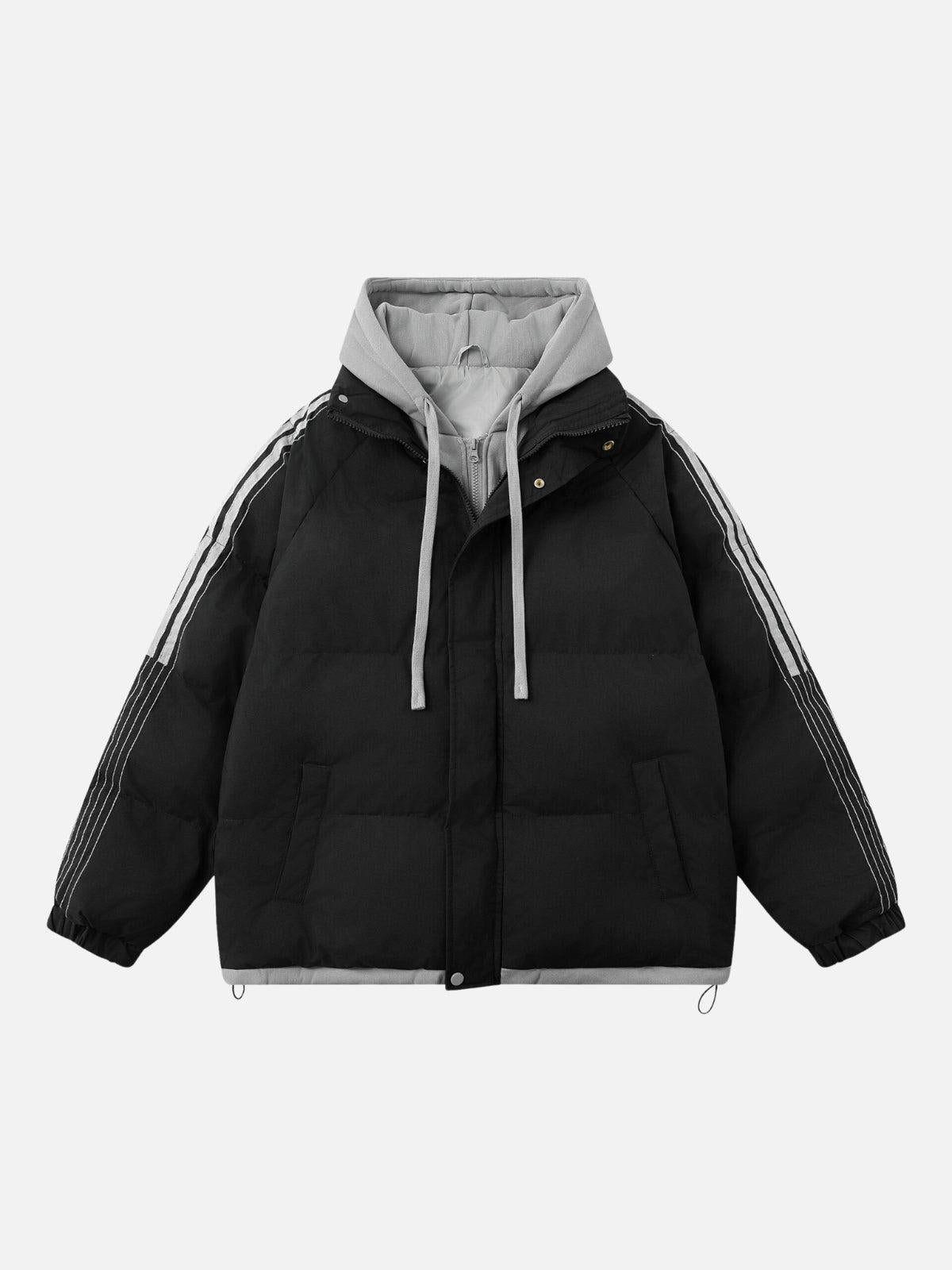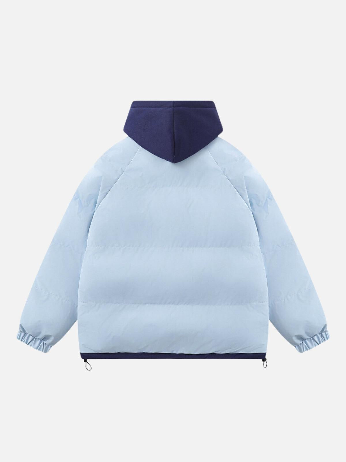 Break the chill with this head-turning puffer jacket that fuses comfort and urban edge in a striking light blue and navy combo. The bold stripes along the sleeves add a touch of y2k nostalgia, perfect for those who embrace streetwear fashion with confidence. Its plush, padded texture ensures warmth without sacrificing style, while the oversized fit offers a cozy embrace in a one-size-fits-all design. Whether you’re layering it over your favorite hoodie or pairing it with sleek joggers, this jacket is your ticket to effortless cool. Slip it on and redefine your outfit game today.