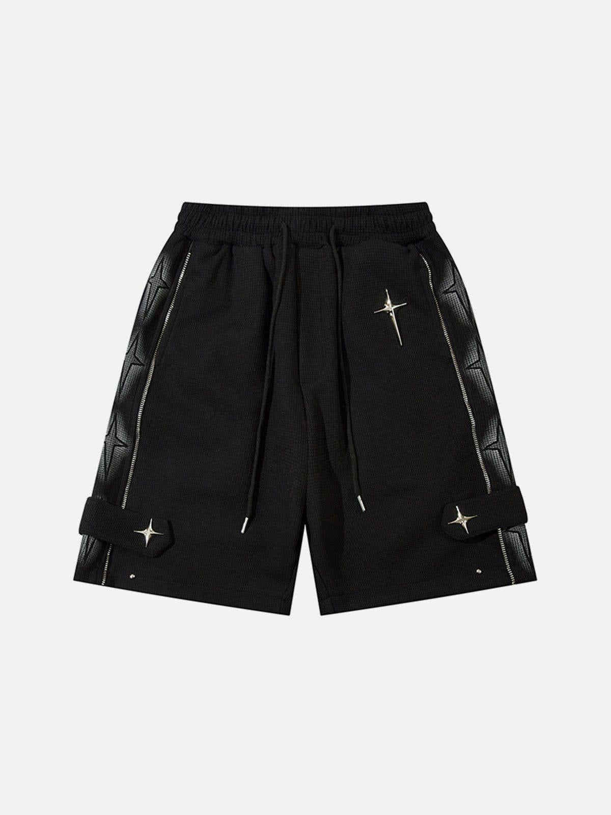 Boldly step into the urban jungle with these sleek shorts that fuse streetwise edge and effortless comfort. The black fabric is punctuated by striking star accents, setting you apart with every stride. Crafted for a relaxed fit, these shorts are perfect for those who embrace individuality in their summer style. Available in sizes XS through L, they offer a flawless fit for every modern trailblazer. Pair them with a crisp white tee to make the black hue pop, or go monochrome for a look that’s undeniably cool. Whether you’re hitting the city streets or lounging with friends, these shorts are your go-to for summer fashion inspo.