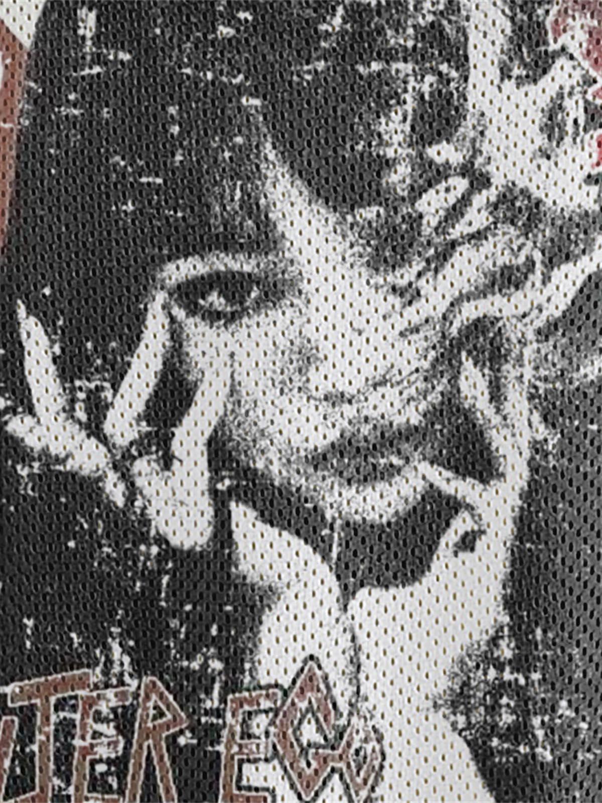 Concert Outfit Street Stitching Mesh Character Print T- Shirt High-quality product featuring concert outfit ideas, country concert outfit, outfit inspo and more. Modern design that fits the latest trends. Premium materials ensure durability and comfort. Order now for special offers! Product designed with attention to every detail. Suitable for all occasions and personal styles.