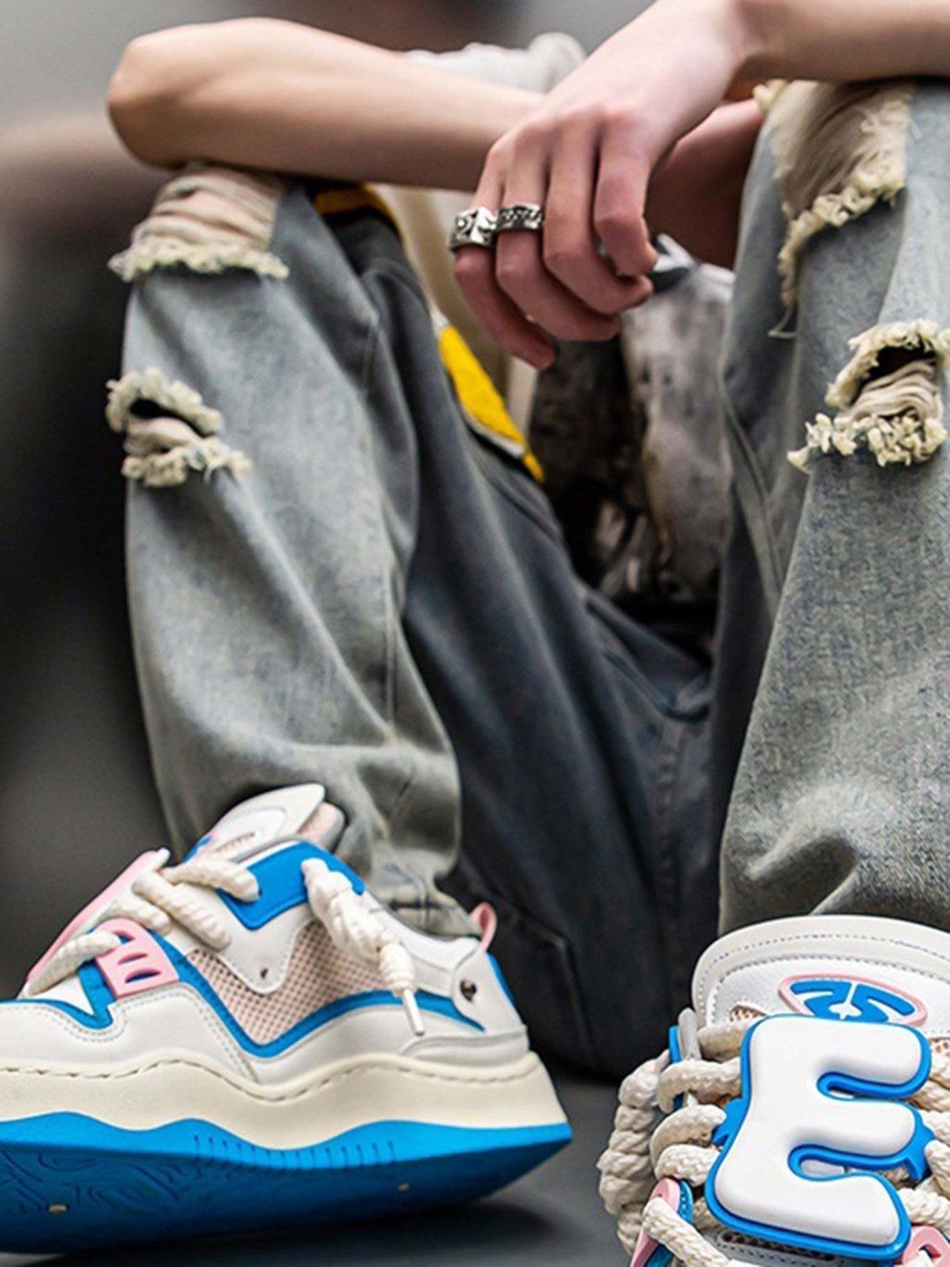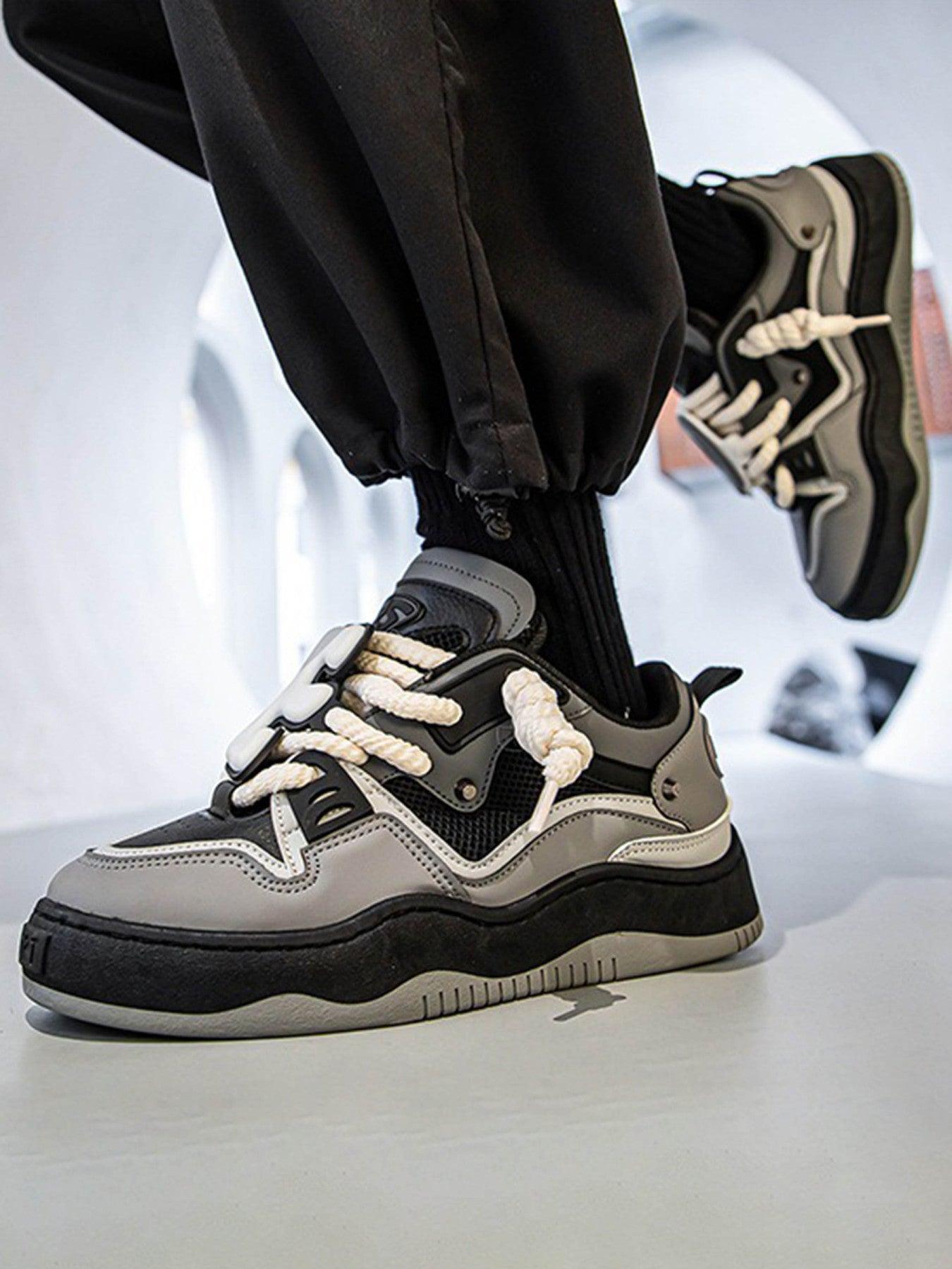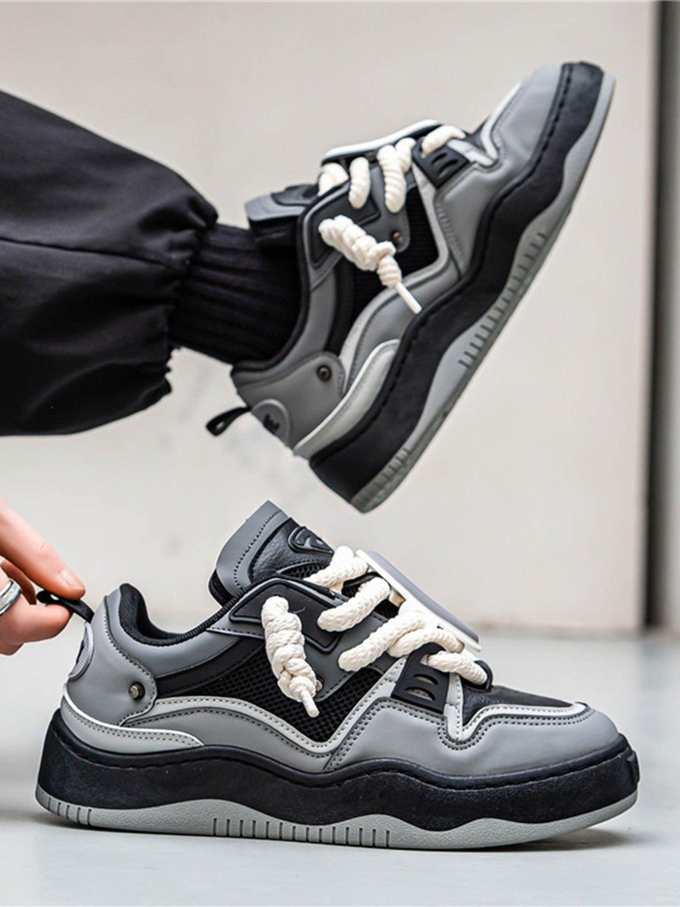 Strap into the future of streetwear with these sneakers that blend cutting-edge design with urban flair. The sleek gray tones are punctuated by bold, chunky laces and intricate stitching, creating a textural masterpiece that demands attention. Available in sizes 39 through 44, these kicks offer a snug fit that complements any look, whether you’re rocking them with your favorite Y2K outfits or mixing them into fresh outfit ideas. Pair them with distressed denim or oversized hoodies for endless outfit inspo. Gear up and redefine your style game.