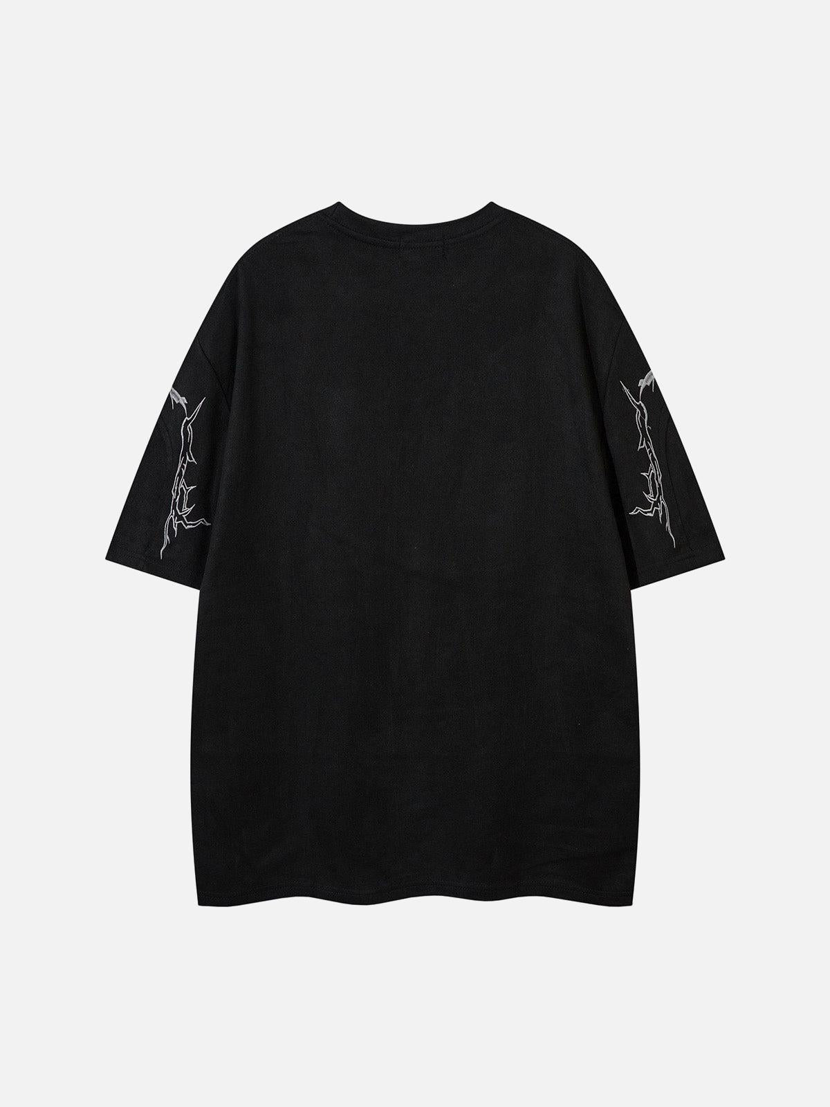 Break the mold with this electrifying tee that pulses with energy and edge. The bold lightning graphic crackles across the sleeves and chest, infusing the black canvas with a fierce, dynamic vibe. Its relaxed fit ensures comfort whether you’re in a small or rocking an XL, making it a staple for any urban adventure. Perfect for mixing with distressed jeans or layering under a sleek jacket, this piece effortlessly elevates your summer style. Available in rich black or earthy brown, it’s time to own your look and stride confidently into the spotlight.