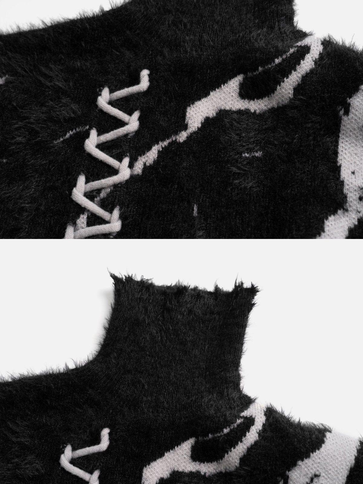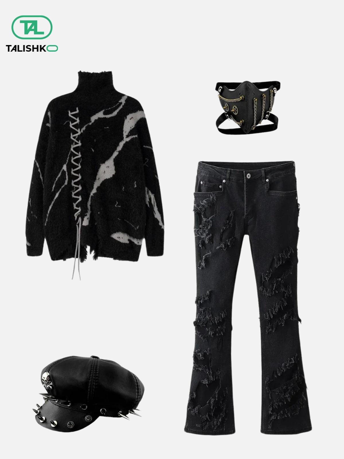 Embrace the edge of urban style with this fiercely unique piece, where abstract patterns collide with bold textures, creating an electrifying look. The deep black fabric is interspersed with striking gray streaks, while the daring lace-up detail adds an unexpected twist. Available in sizes S through XL, it delivers a comfortable yet rebellious fit, perfect for crafting those ultimate y2k outfit ideas. Pair it with distressed jeans or layer it over a sleek top for a look that’s as audacious as the streets demand. Dive into your streetwear fashion evolution with this essential piece.