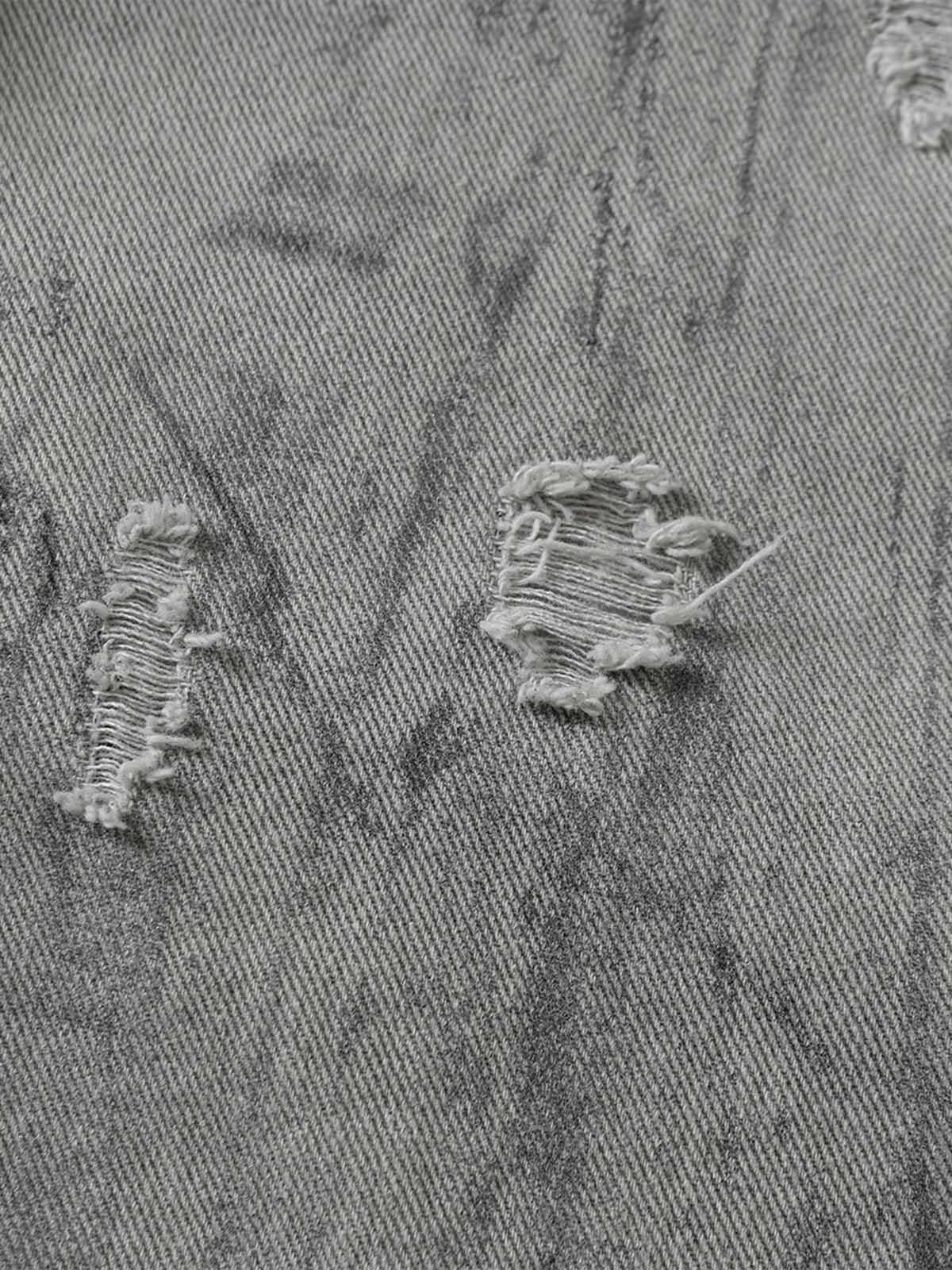 Unleash a gritty urban vibe with this distressed light gray jacket, where the raw, textured finish embodies the essence of streetwear fashion. The rugged aesthetic is perfectly balanced with a sleek fit, making it an ideal addition to your y2k outfits. Available in sizes S, M, L, and XL, this piece offers both versatility and comfort, seamlessly blending into any wardrobe. Pair it with dark jeans or layer it over a graphic tee for effortless outfit ideas. Embrace the edge and redefine your style today.