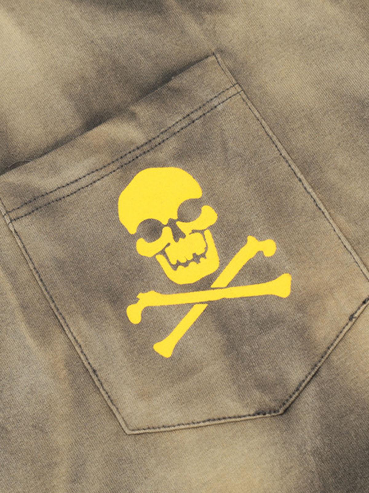 Set the streets ablaze with a bold fusion of urban style and edgy flair, embodied in this brown tee that screams individuality. The subtle tie-dye wash creates a dynamic texture, effortlessly merging with the rebellious skull graphic peeking from the chest pocket. Designed to fit comfortably across sizes S to XL, this piece is a versatile staple for your summer fashion inspo. Whether you pair it with distressed jeans or layer it under a jacket, you’ll capture the essence of streetwear cool. Slip into this tee and let your summer style speak volumes.