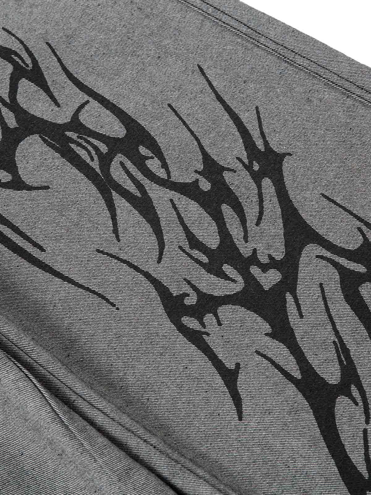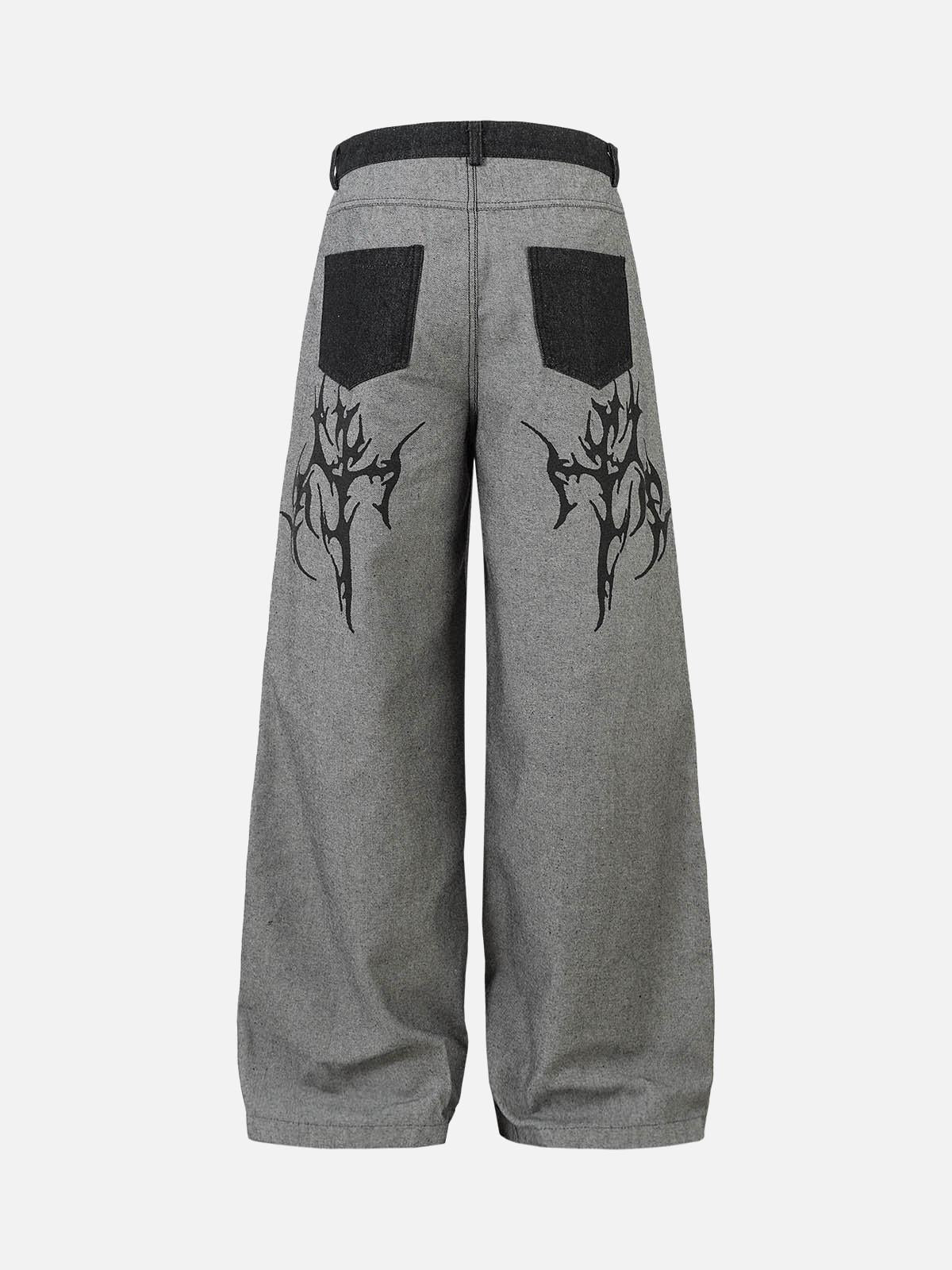 Step into the future of streetwear fashion with these bold gray pants that scream confidence and individuality. The striking tribal-inspired designs in black ink blaze across the wide-leg silhouette, offering a unique twist to the classic gray palette. Crafted for those who dare to stand out, the smooth texture and relaxed fit provide all-day comfort, whether you’re rocking them in a size M, L, XL, or 2XL. Pair these with a fitted top for a standout y2k outfit, or go oversized for an effortlessly cool vibe. Elevate your street style game and make these a staple in your wardrobe today.