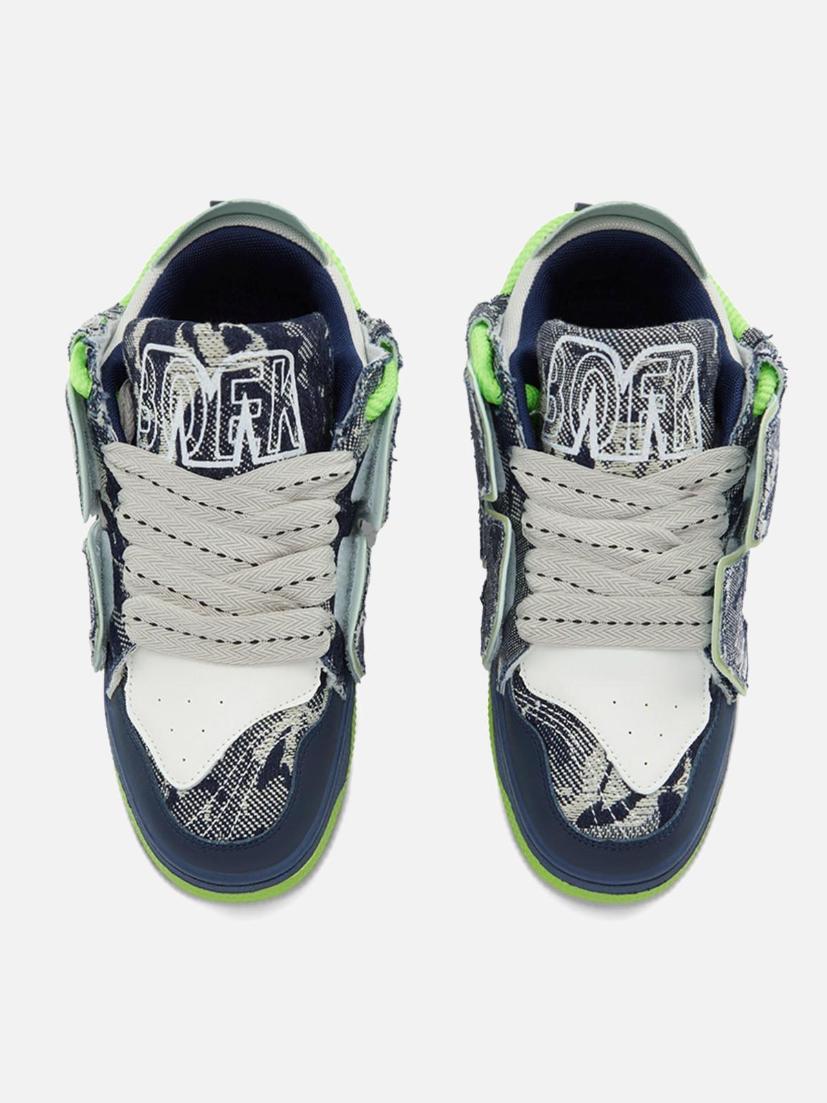 Canvas meets urban flair in these versatile lightweight board shoes, featuring a vibrant paisley pattern and striking neon green accents. A lace-up closure ensures a secure fit, while the padded insole delivers comfort for all-day wear. Durable rubber soles promise longevity, making these shoes a staple for any streetwear enthusiast.