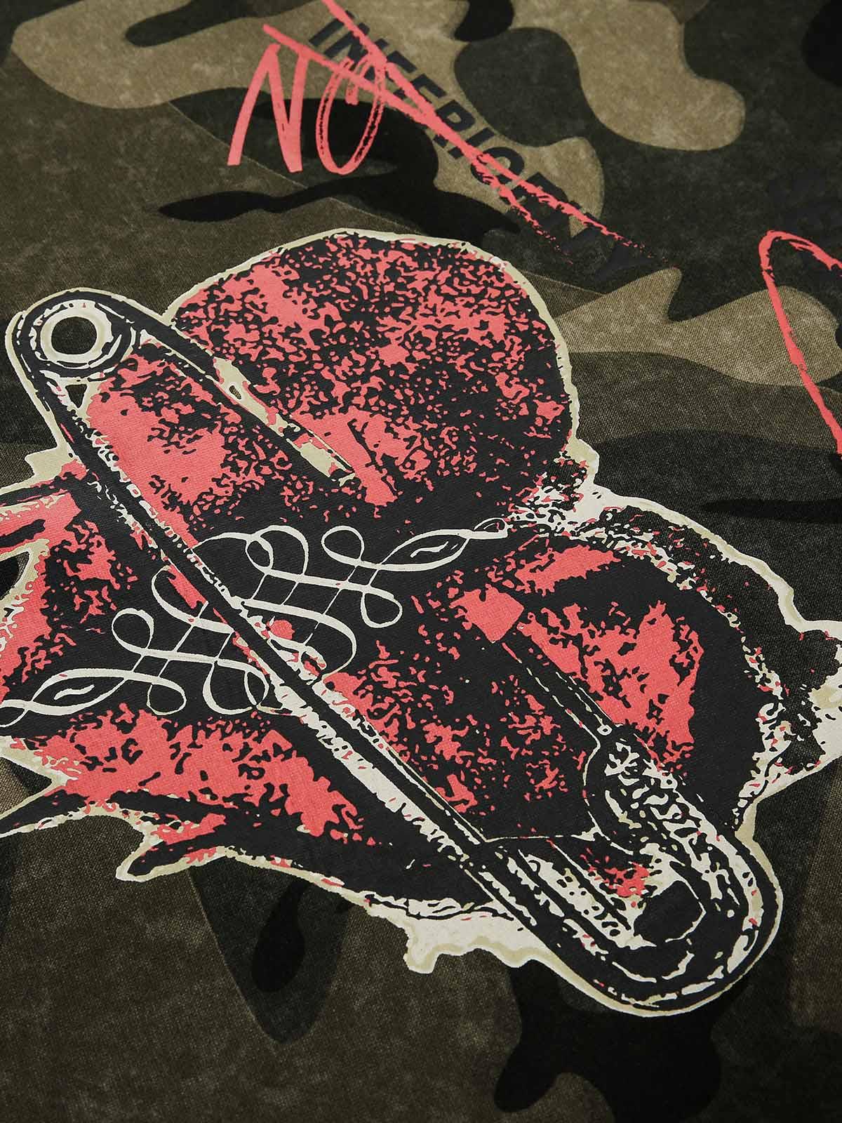 Vintage Camouflage Flame Heart Print Hoodie: Perfect Concert Outfit Choice