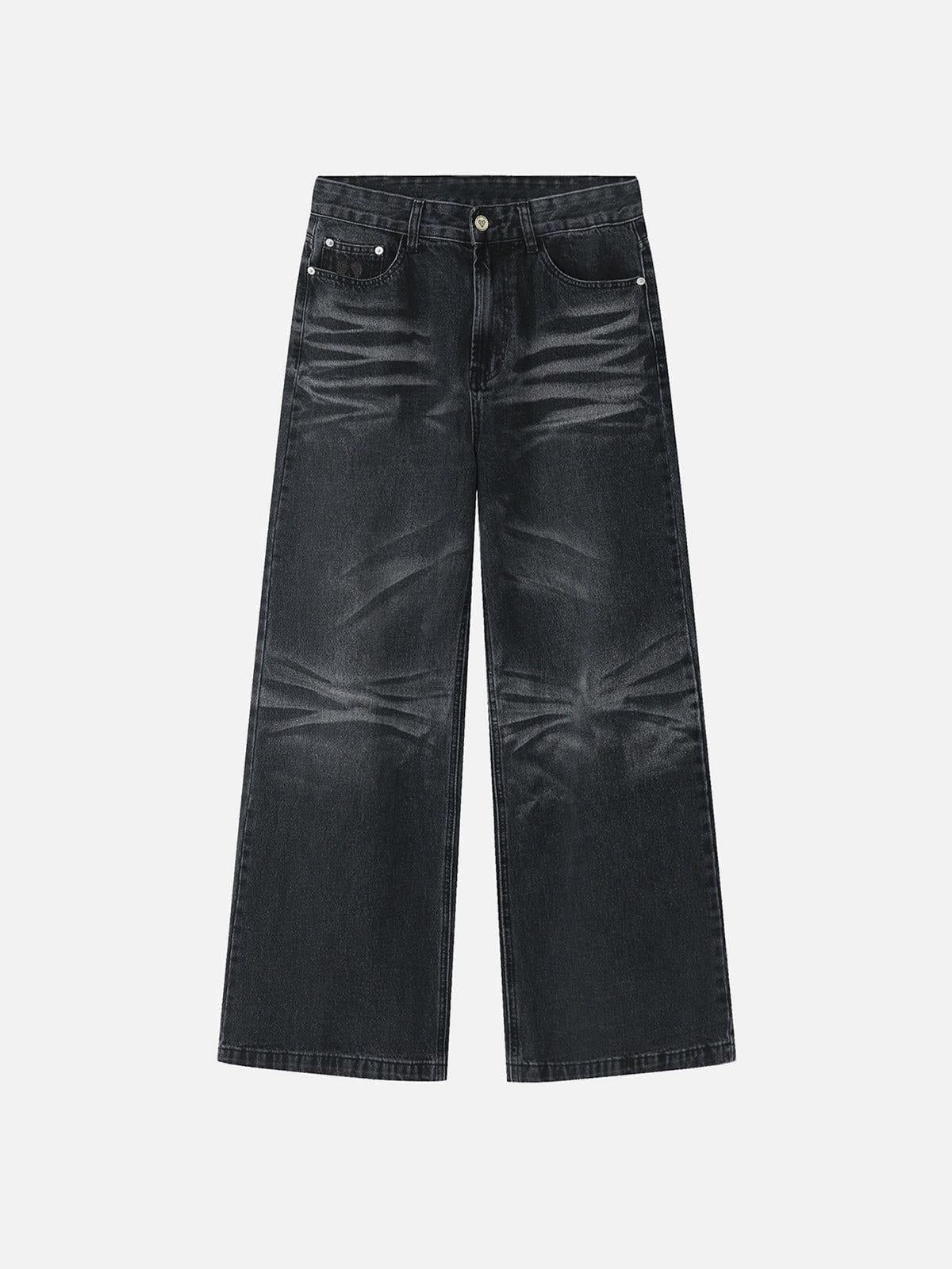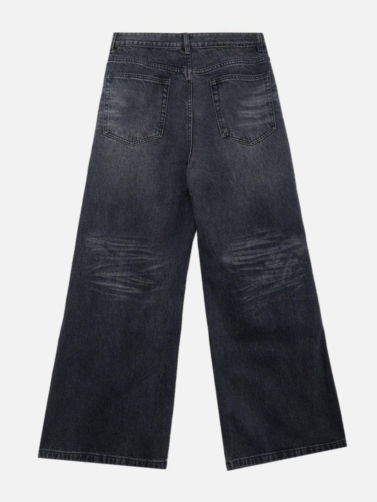 Embrace the bold resurgence of urban nostalgia with these wide-leg jeans, where a worn-in black hue meets effortlessly cool distressing. The relaxed fit offers comfort and swagger in one dynamic package, making them a perfect canvas for your streetwear fashion explorations. Designed in a universal one size, these jeans seamlessly blend into any wardrobe with their versatile silhouette and edgy texture. Pair them with your favorite sneakers and oversized tee for that ultimate y2k vibe, or mix it up with a sleek jacket for a modern twist. Elevate your outfit ideas and let your style speak volumes.