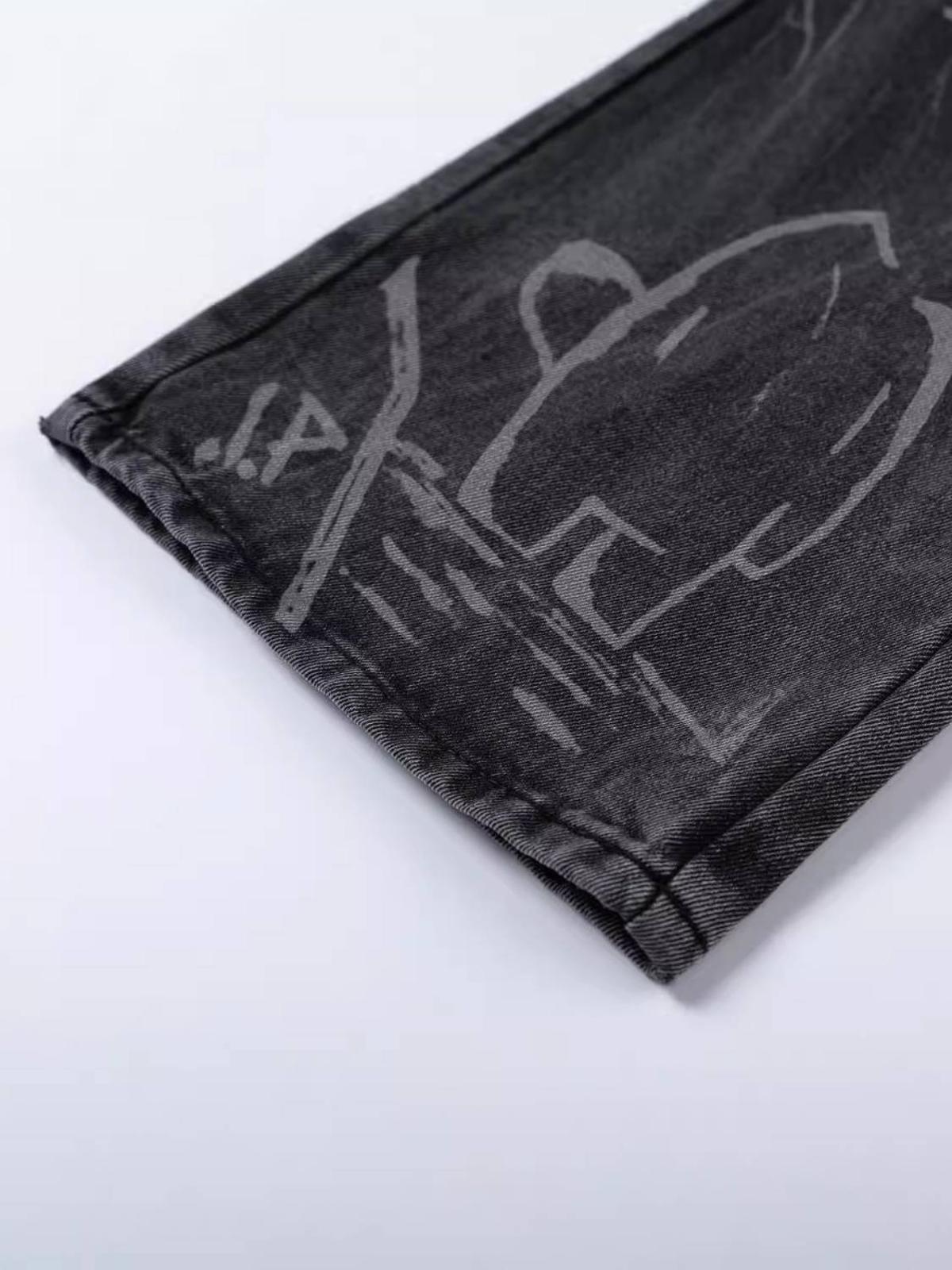 These jeans redefine urban edge, flaunting a bold gray canvas adorned with striking graphic art that channels a rebellious spirit. The intricate designs feature playful yet fierce characters, adding a touch of streetwear fashion that’s perfect for those who live unapologetically. With a relaxed fit that’s available in sizes ranging from S to XXL, these jeans promise comfort without compromising style. Pair them with your favorite oversized hoodie for a y2k outfit that speaks volumes. Ready to turn heads? Slip into these jeans and let your style do the talking.
