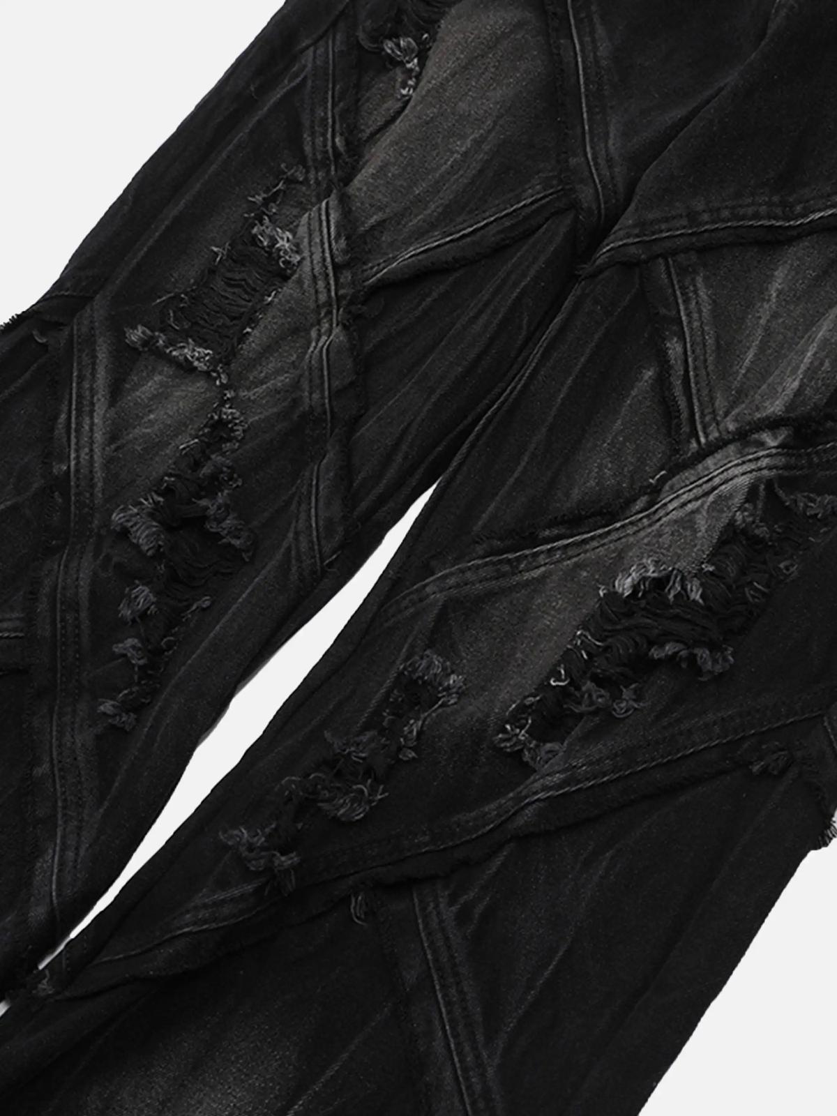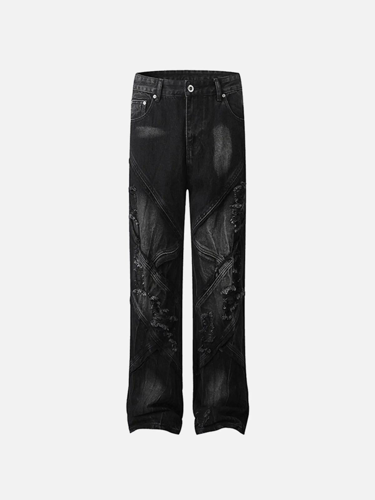 Ride the wave of urban cool with these distressed jeans, where intricate diagonal rips create a dynamic, edgy design that screams individuality. The washed-out blue hue pairs effortlessly with any streetwear fashion, offering a versatile canvas for your boldest outfit ideas. With a relaxed fit that comes in sizes from S to XXL, these jeans don’t just fit your body—they fit your vibe. Whether you’re hitting the city streets or chilling with friends, these jeans are the perfect fusion of comfort and style. Dare to wear them, and redefine your Y2K look.
