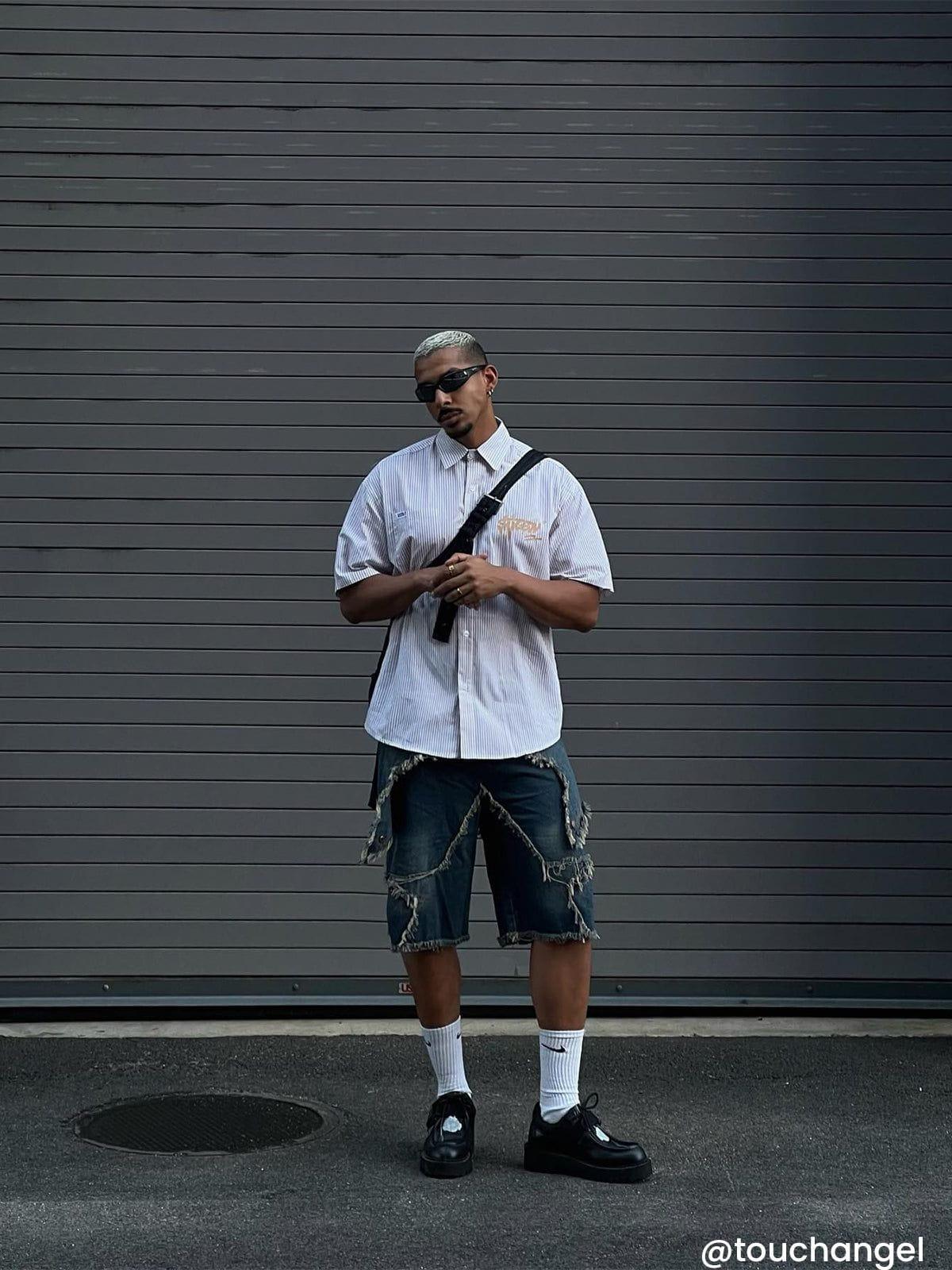 Step into the urban jungle with these bold denim shorts, where rugged distressing meets cutting-edge design, creating a raw and powerful aesthetic. The deep indigo hue is perfectly balanced with frayed edges and intricate stitch detailing, giving you that effortlessly cool vibe. Tailored in a one-size fit, these shorts are your ultimate summer style companion, blending comfort with a rebellious edge. Pair them with your favorite kicks and a simple tee for a look that’s all about confidence and authenticity. Embrace the streetwear revolution and redefine your summer fashion game.