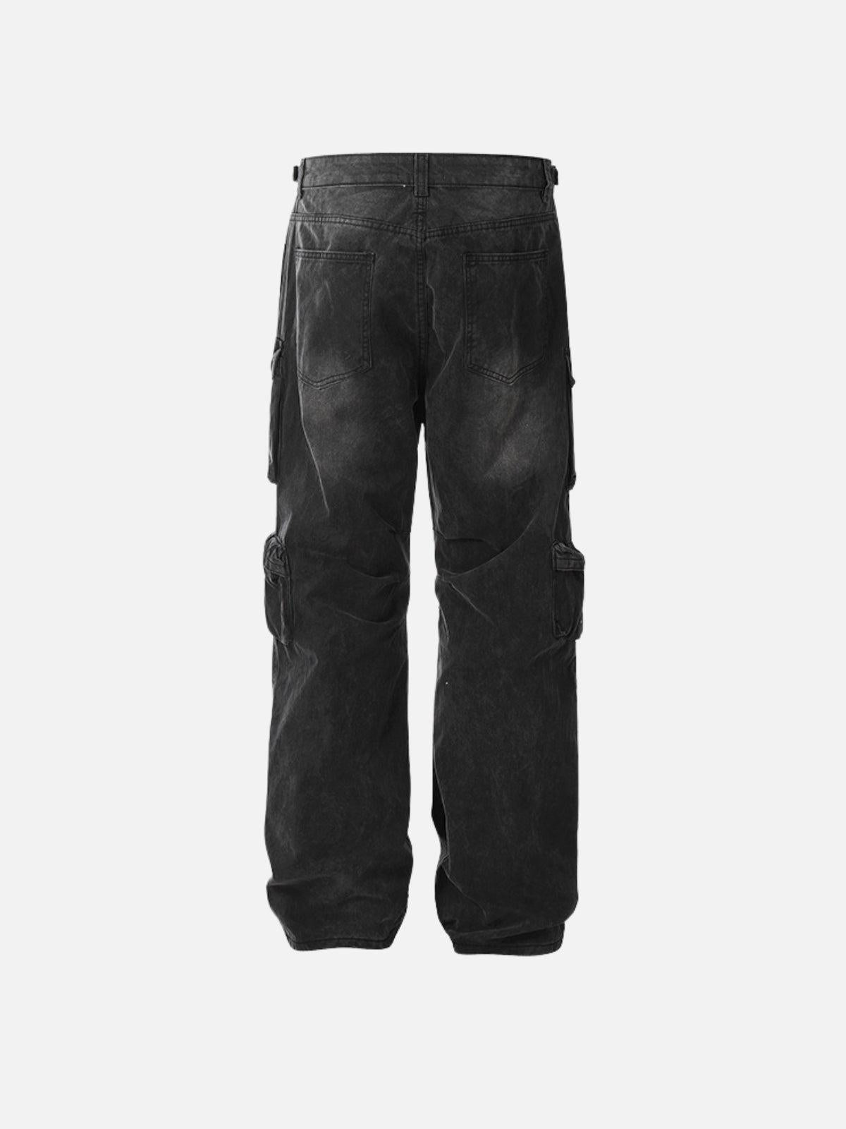 Stylish Concert Outfit: Washed Multi Pocket Loose Jeans for Your Next Event