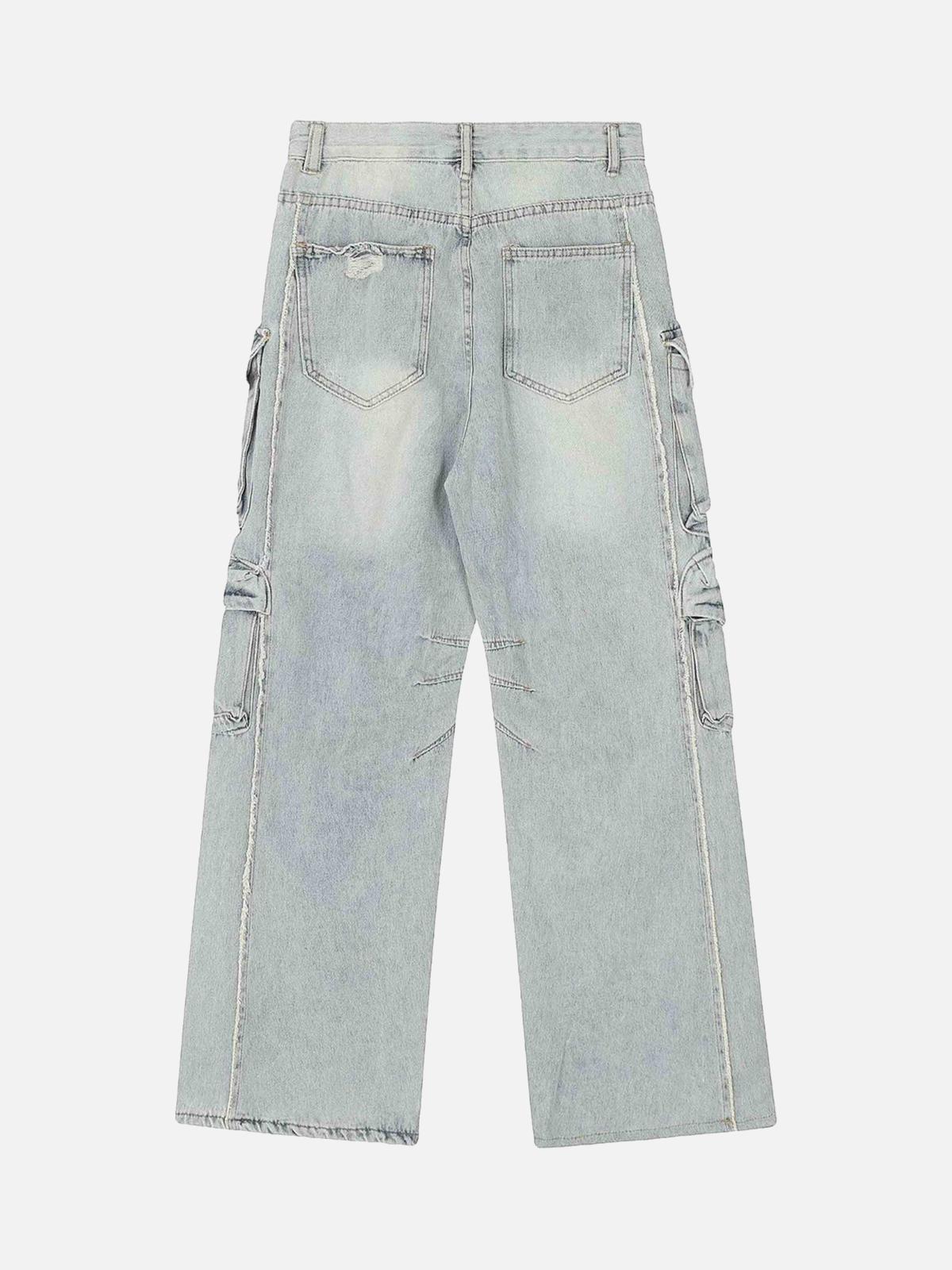 Dive into the essence of urban rebellion with these rugged, distressed cargo pants, where every rip and pocket speaks of untold adventures. The faded blue denim exudes a raw, lived-in vibe, perfect for those who embrace the edgy spirit of streetwear fashion. With a relaxed fit available in sizes from S to XL, these pants are your go-to for constructing bold Y2K outfits that turn heads. Pair them with a graphic tee and chunky sneakers for ultimate outfit inspo that resonates with confidence. Ready to redefine your style game?