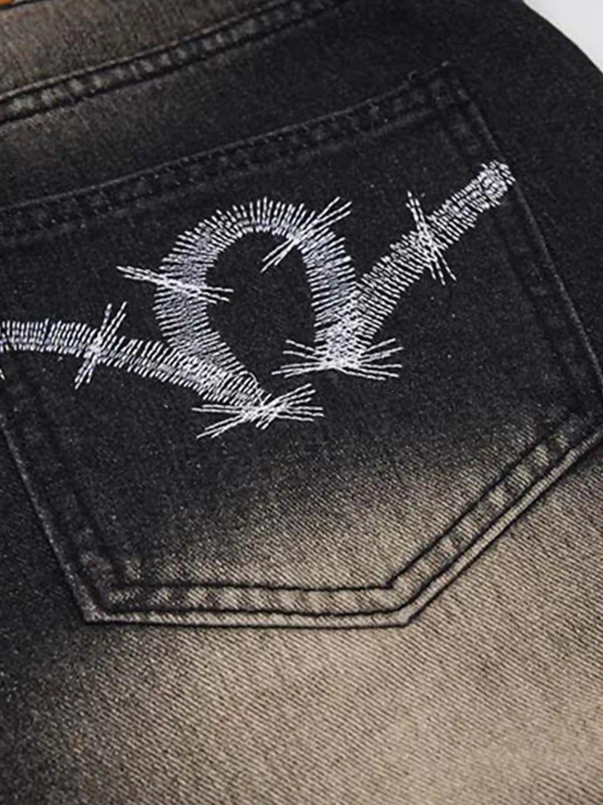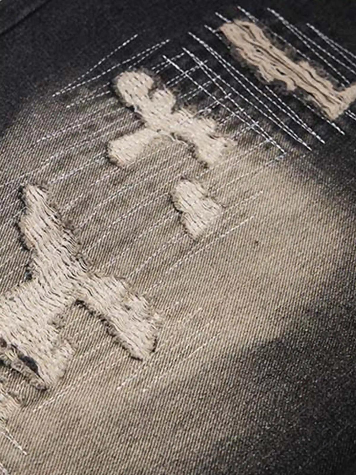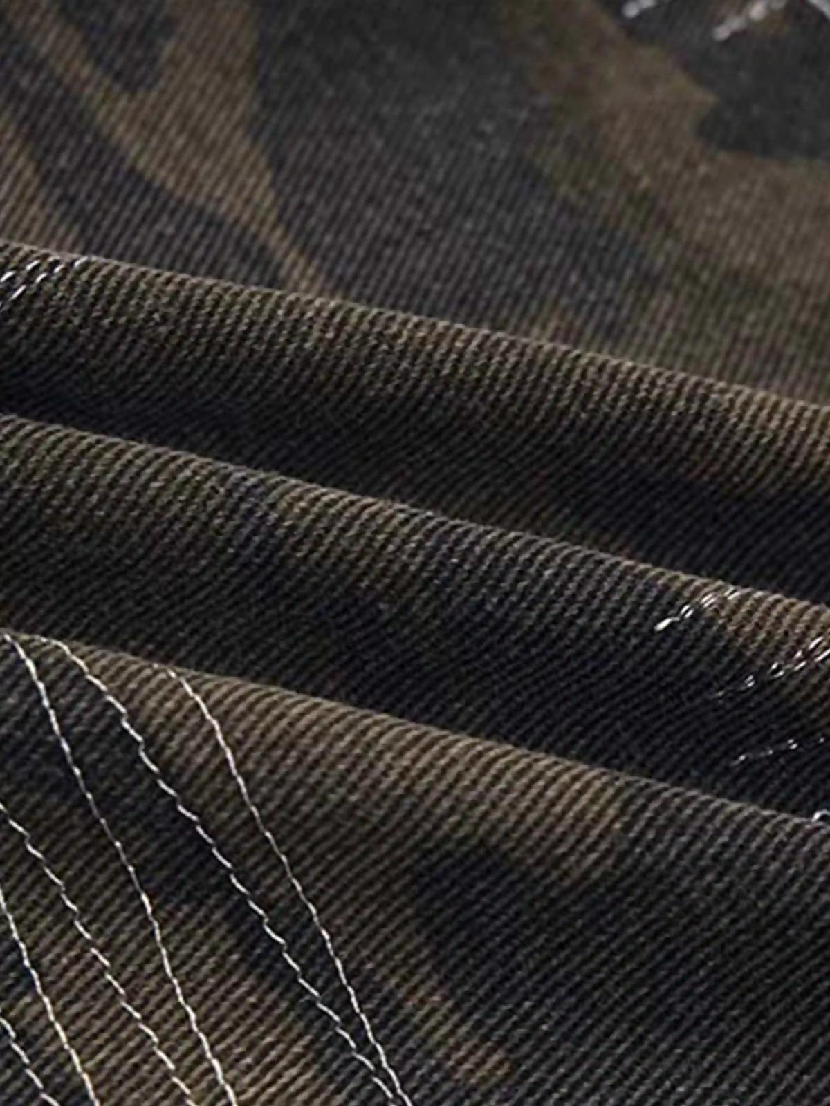 Revolutionize your streetwear game with these bold, black jeans that effortlessly blend distressed details and camo patchwork for a rugged yet stylish edge. The intricate stitch patterns and faded textures tell a story of urban grit, while the versatile fit offers comfort and flair in sizes ranging from S to XXL. Pair them with your favorite oversized tee or a sleek bomber jacket for endless outfit ideas that scream confidence. Walk the streets with attitude, and let these jeans be your go-to for authentic, unapologetic style.