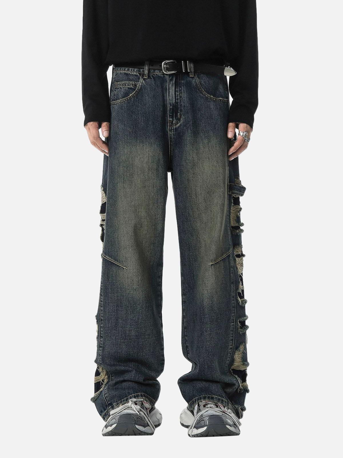 Break the mold with these edgy blue distressed jeans, designed to infuse a bold attitude into any streetwear fashion. The rugged, textured aesthetic offers a nod to y2k vibes, while the artful distressing down the sides captures the rebellious spirit of urban style. Available in sizes from S to 2XL, these jeans provide a relaxed fit that effortlessly combines comfort and flair, perfect for crafting outfit ideas that stand out. Pair them with your favorite graphic tee and sneakers for a look that’s undeniably yours. Embrace the vibe and redefine your wardrobe today.