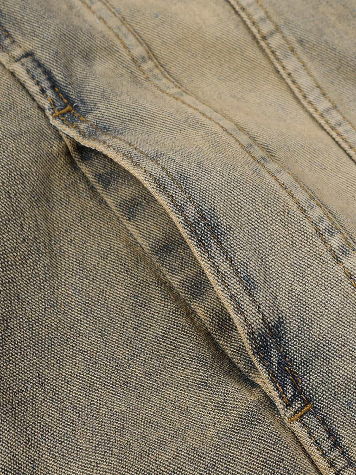 Embrace the unapologetic edge of urban culture with this bold denim jacket, featuring an artfully faded gray wash that screams retro cool. The striking gothic font emblazoned across the chest brings a rebellious flair, while the snug fit ensures you stay effortlessly stylish whether you’re rocking it in medium, large, XL, or 2XL. Layer it over your favorite Y2K outfits for an effortlessly fresh take on streetwear fashion. Snap it up and redefine your outfit inspo with every wear.