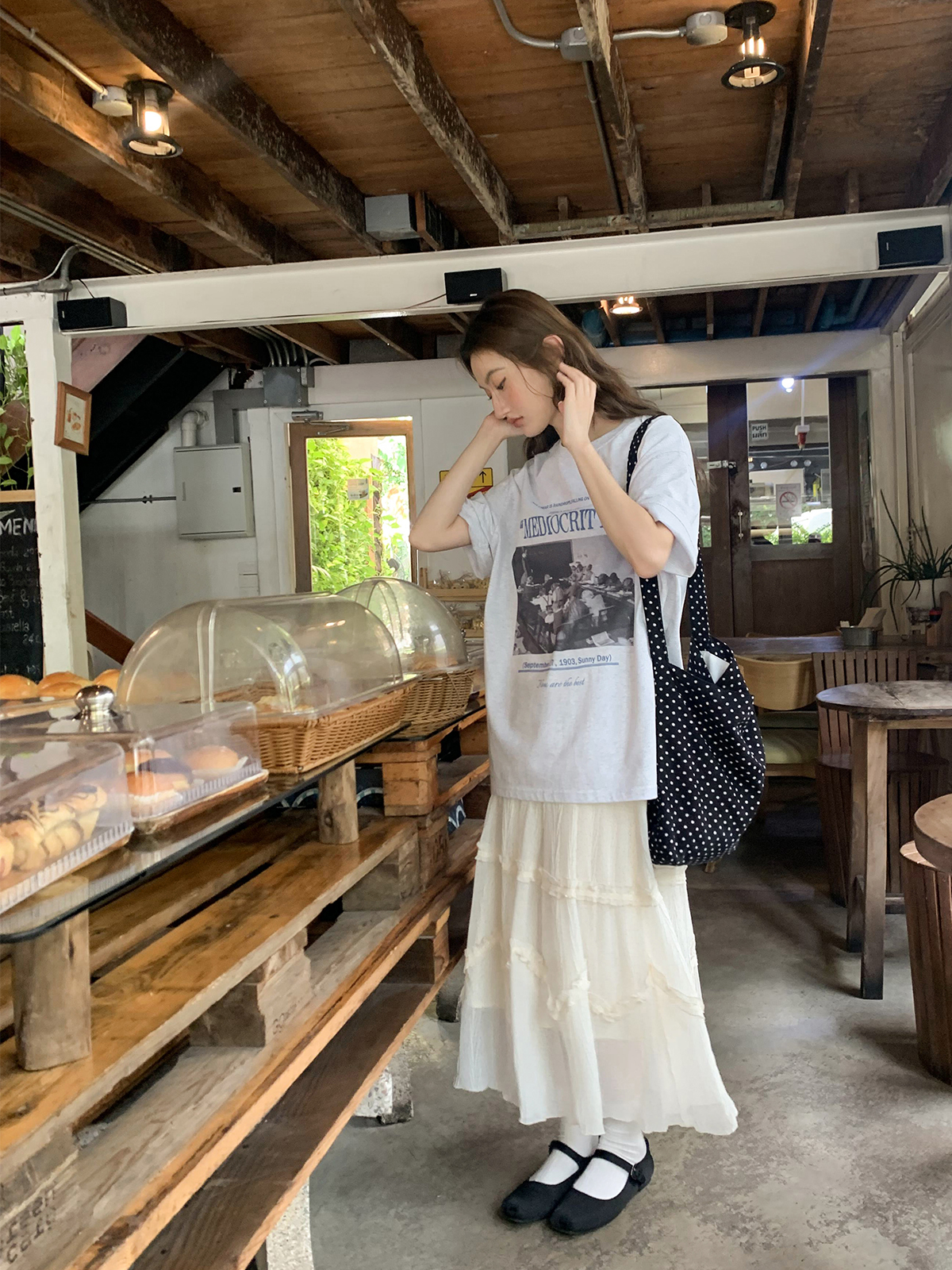 Concert Outfit ContraPortrait Print Neck Short Sleeve T- shirt Women Loose Fit Pure Cotton Summer
