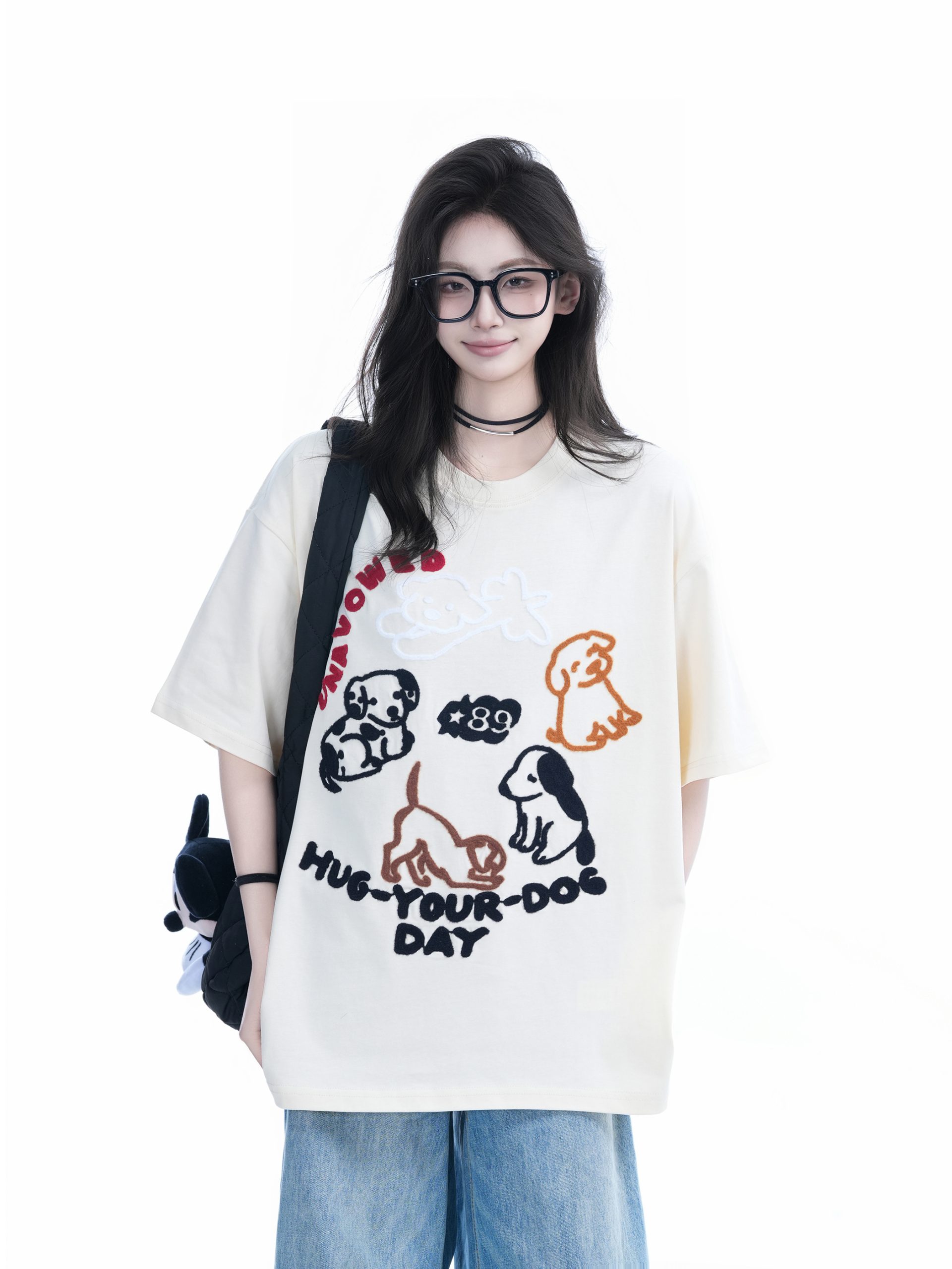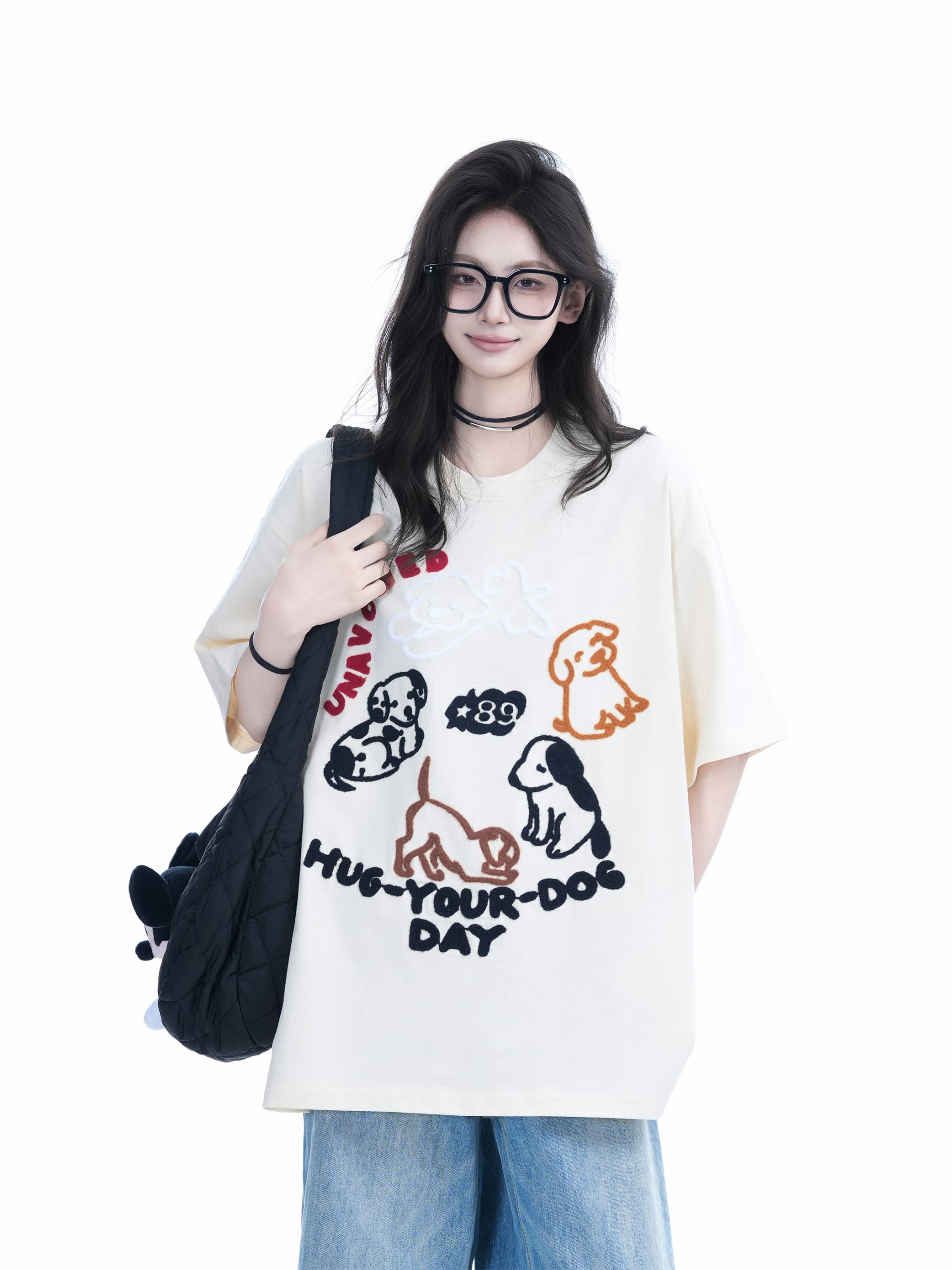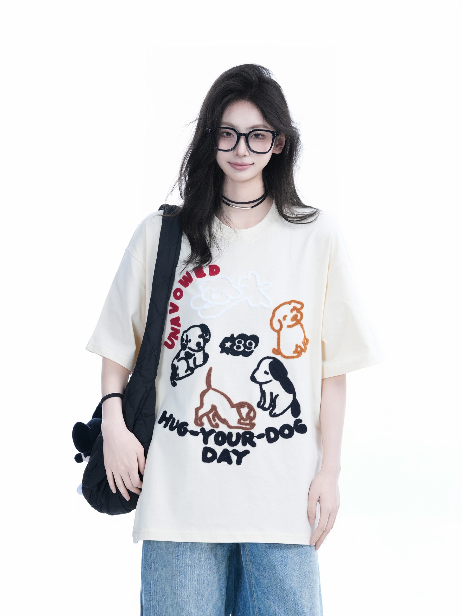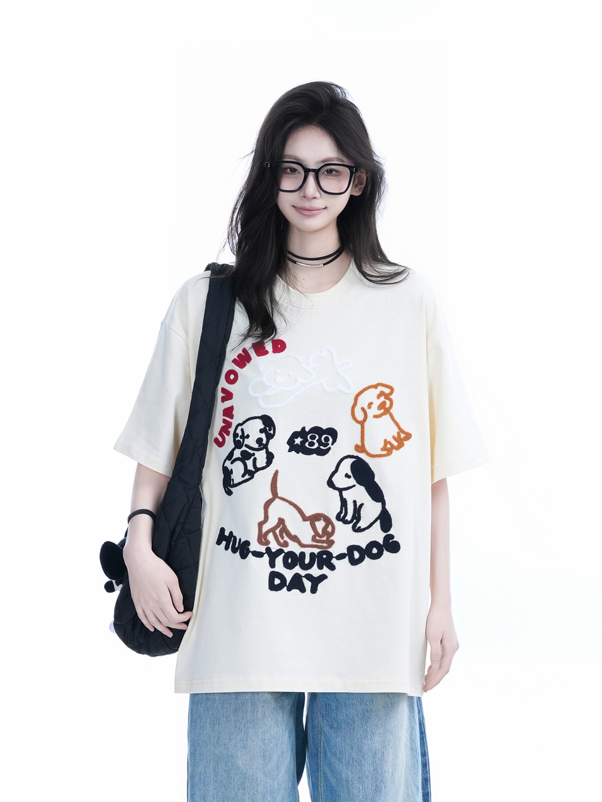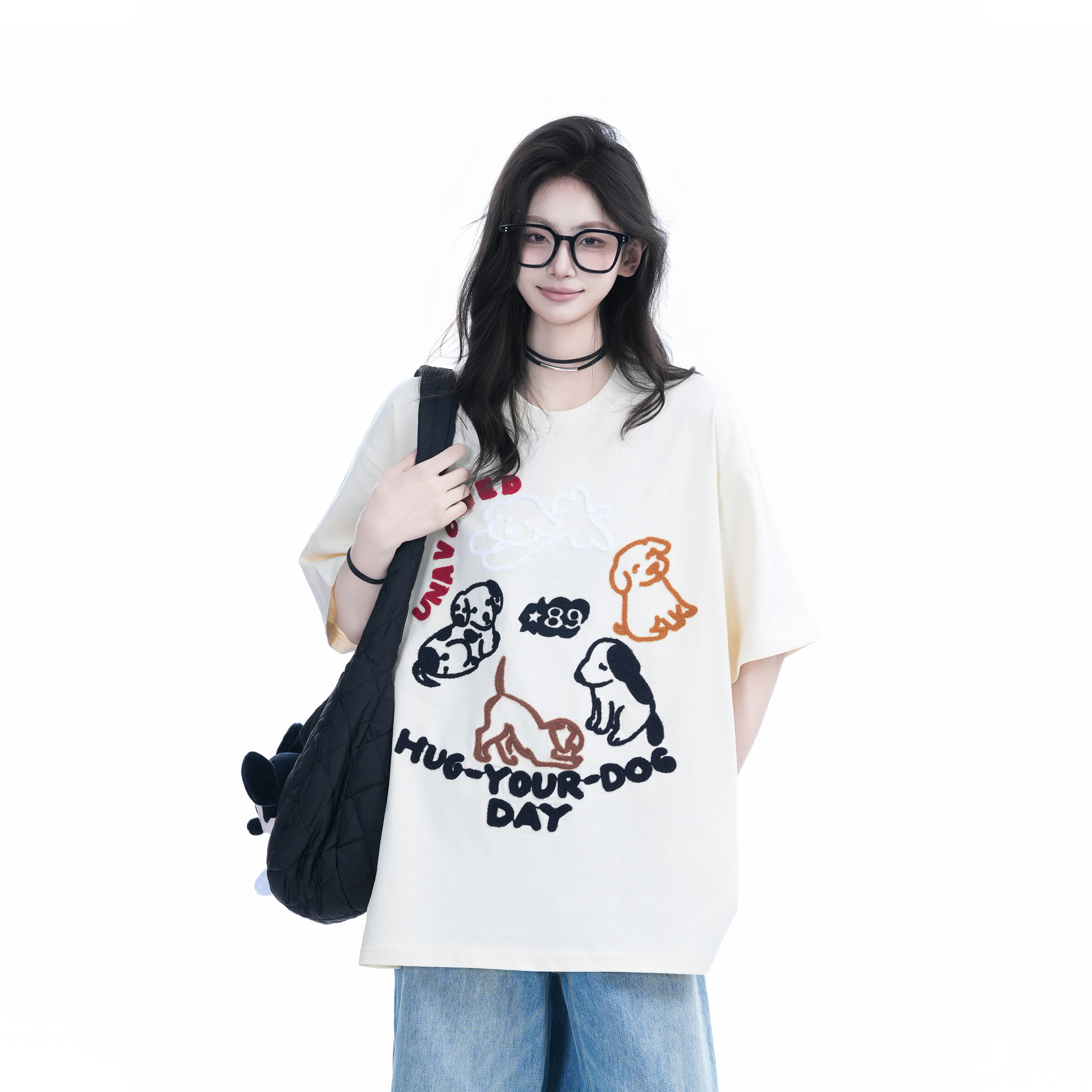 Embrace a playful vibe this summer with our Cute Cartoon Dog Embroidered Short-Sleeve T-Shirt for Women. Crafted from soft, pure cotton, this trendy loose-fit tee offers ultimate comfort while showcasing a charming 90s-inspired design that adds a fun twist to your casual wardrobe. Perfect for pairing with shorts or jeans, this t-shirt is your go-to piece for effortless style—ideal for sunny outings or lounging at home. Don’t miss out on this must-have addition to your collection; add to your cart today!