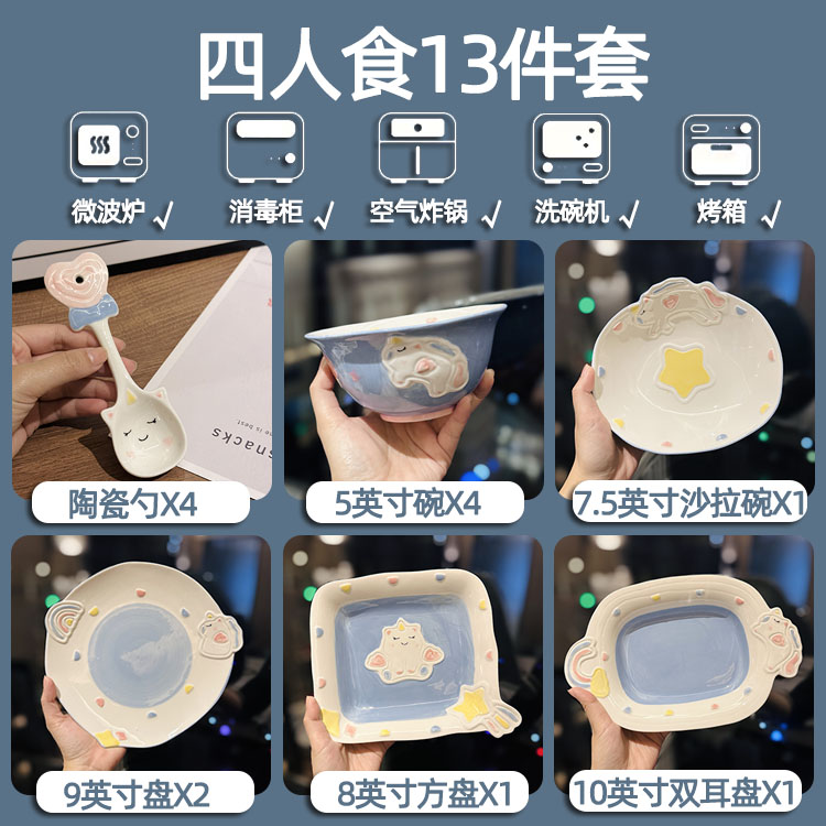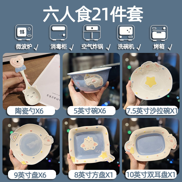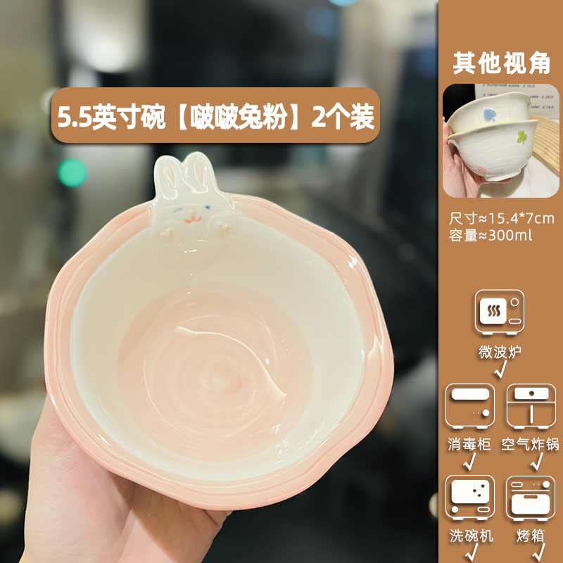 | Color | 5-inch bowl – blue unicorn, 5-inch bowl – blue unicorn + twisting spoon, 5-inch bowl – blue unicorn + unicorn spoon, 5.5-inch bowl – bobo rabbit pink + bobo rabbit spoon, 5.5-inch bowl – bobo rabbit powder, 5.5-inch bowl – bobo rabbit powder + twisty spoon, 5.5-inch bowl – bobo rabbit yellow, 5.5-inch bowl – bobo rabbit yellow + bobo rabbit spoon, 5.5-inch bowl – bobo rabbit yellow + twisty spoon, 6-inch bowl – blue unicorn, 6-inch bowl – blue unicorn + twisting spoon, 6-inch bowl – blue unicorn + unicorn spoon, 7.5-inch dessert bowl – unicorn blue, 8-inch salad bowl – bobo rabbit pink, 8-inch salad bowl – bobo rabbit pink + bobo rabbit spoon, 8-inch salad bowl – bobo rabbit yellow, 8-inch salad bowl – bobo rabbit yellow + bobo rabbit spoon, 8-inch shallow plate – bobo rabbit pink, 8-inch shallow plate – bobo rabbit yellow, 8.25-inch square deep plate – unicorn blue, 9-inch shallow bowl – bobo rabbit pink, 9-inch shallow bowl – bobo rabbit yellow, 9-inch shallow plate – unicorn blue, Bobo rabbit powder – 5.5-inch bowl [set of four], Bobo rabbit powder – 5.5-inch bowl [set of two], Bobo rabbit powder – soy sauce dish, Bobo rabbit powder = four-person meal [13-piece set], Bobo rabbit powder = one-person meal [4 pieces], Bobo rabbit powder = six-person meal [21-piece set], Bobo rabbit powder = two-person meal [8 pieces], Bobo rabbit yellow – 5.5-inch bowl [set of four], Bobo rabbit yellow – 5.5-inch bowl [set of two], Bobo rabbit yellow – soy sauce dish, Bobo rabbit yellow = four-person meal set [13 pieces], Bobo rabbit yellow = one person meal [4-piece set], Bobo rabbit yellow = six-person meal set [21 pieces], Bobo rabbit yellow = two-person meal [8-piece set], Double ear square plate – bobo rabbit powder, Double ear square plate – bobo rabbit yellow, Double ear square plate – unicorn blue, Pink + yellow bobo rabbit [5.5-inch two bowls and two spoons gift box], Unicorn blue – 5-inch bowl [set of four], Unicorn blue – 5-inch bowl [set of two], Unicorn blue = four-person meal set [13 pieces], Unicorn blue = one-person meal [4-piece set], Unicorn blue = six-person meal [21-piece set], Unicorn blue = two-person meal [8-piece set] |