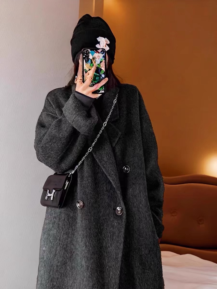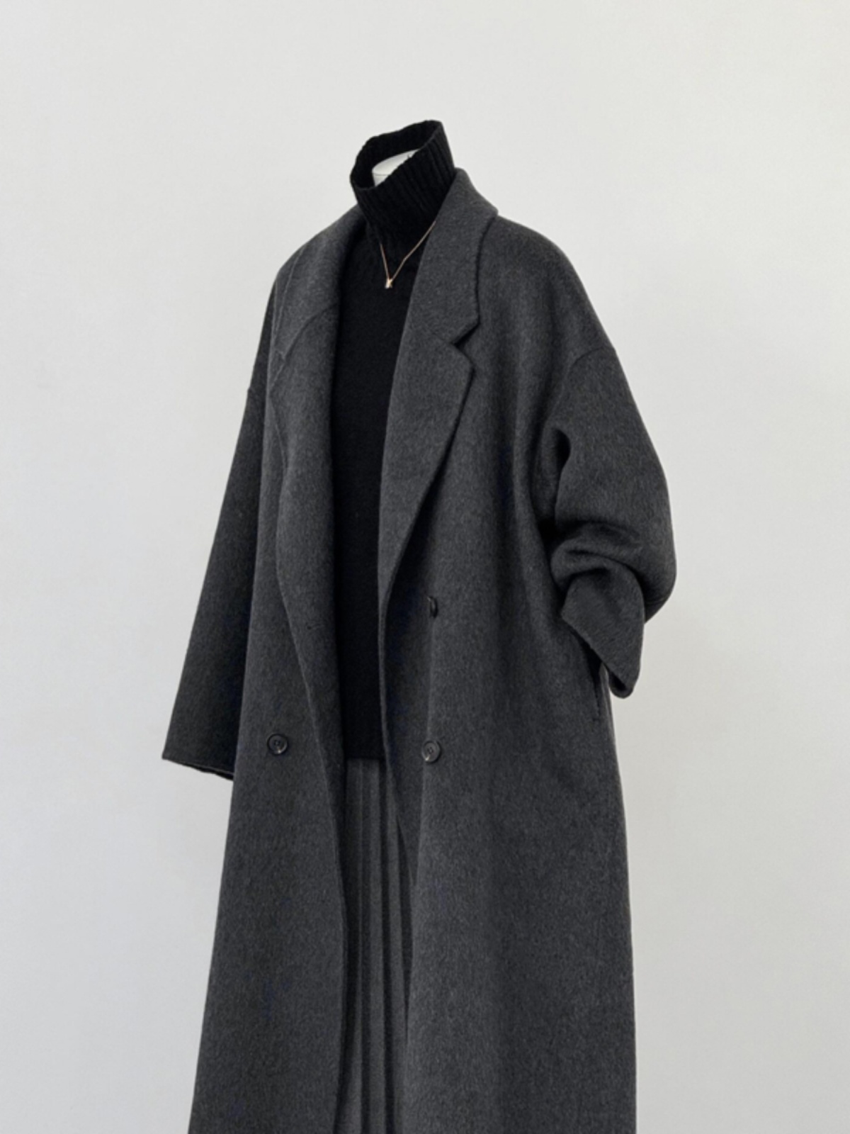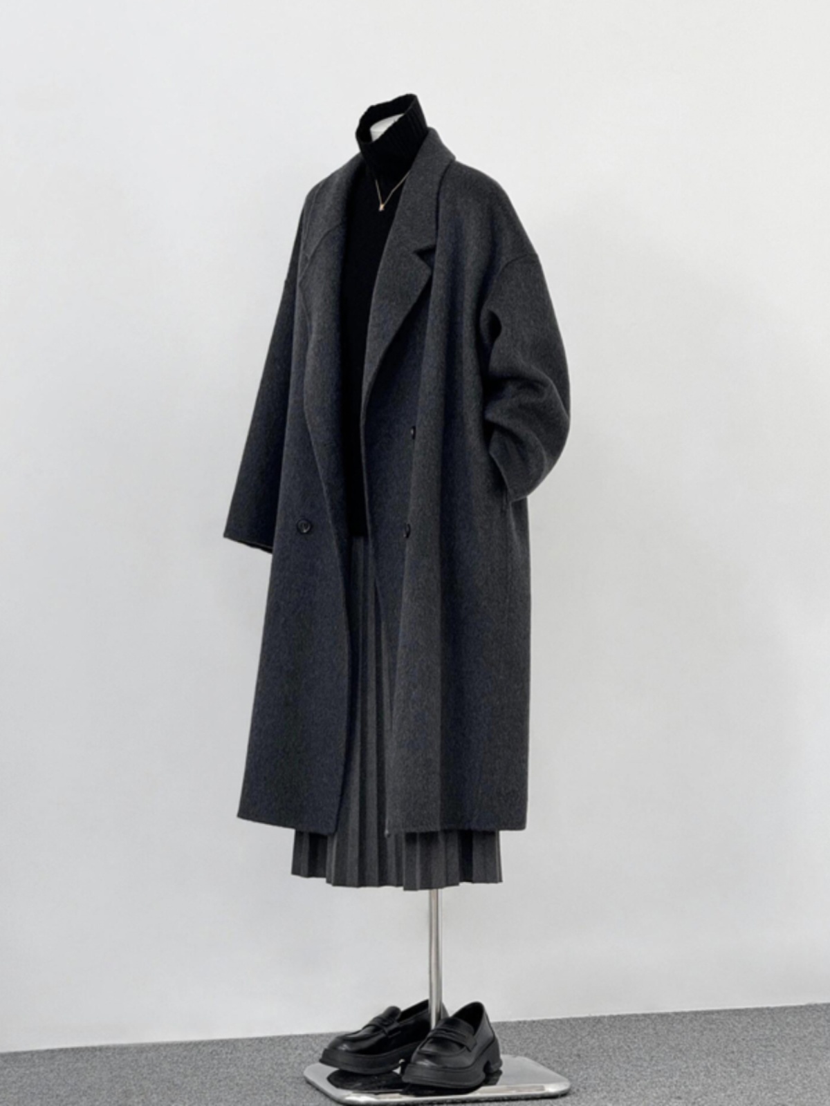 Elevate your autumn and winter wardrobe with our Dark Gray Reversible Cashmere Coat for Women, designed for a chic, loose fit that flatters petite frames. Crafted from luxurious wool, this high-end casual outerwear combines versatility and comfort, allowing you to effortlessly switch between styles while staying warm. Perfect for any occasion, this coat is a must-have for the sophisticated woman. Don’t miss out on this timeless piece—add it to your cart today!