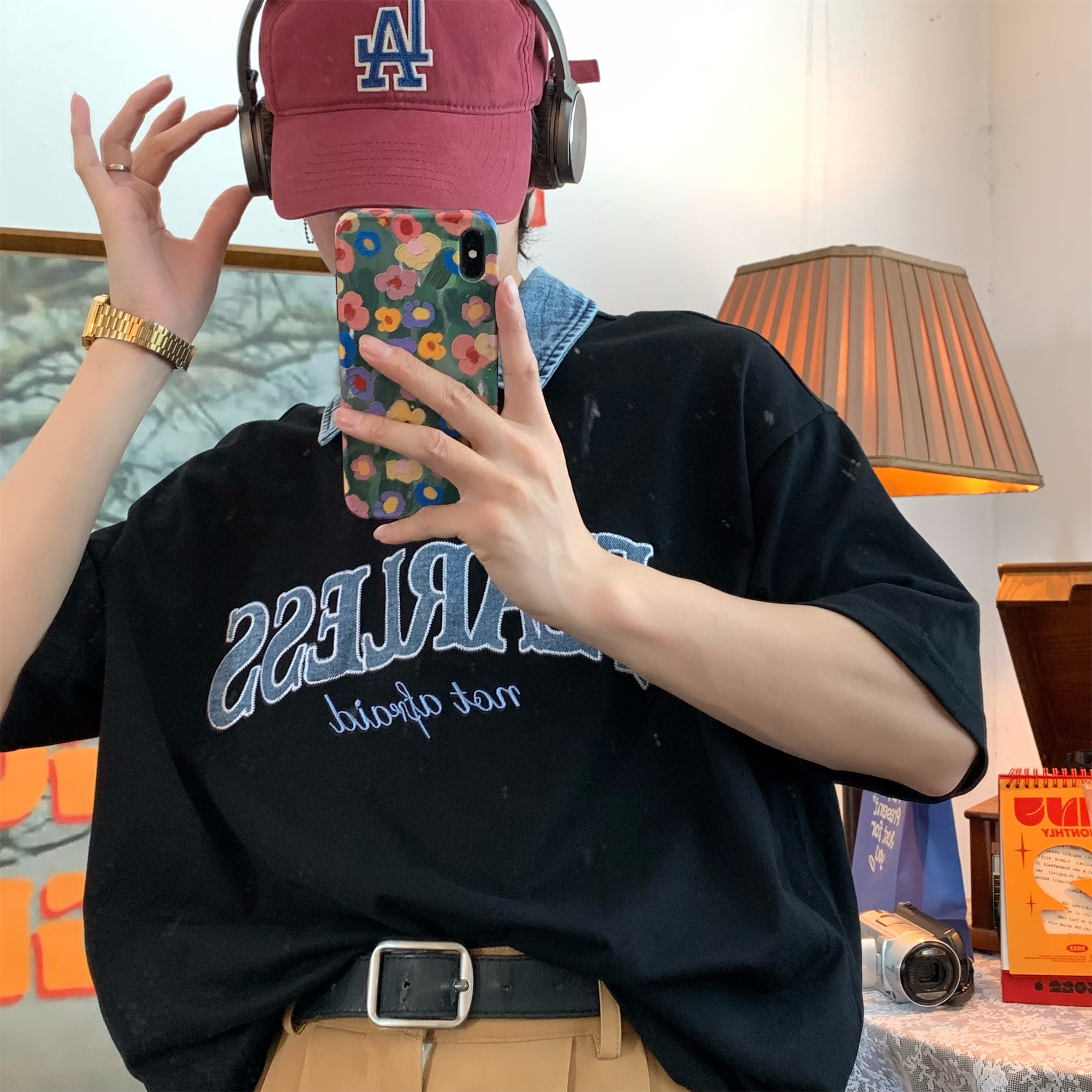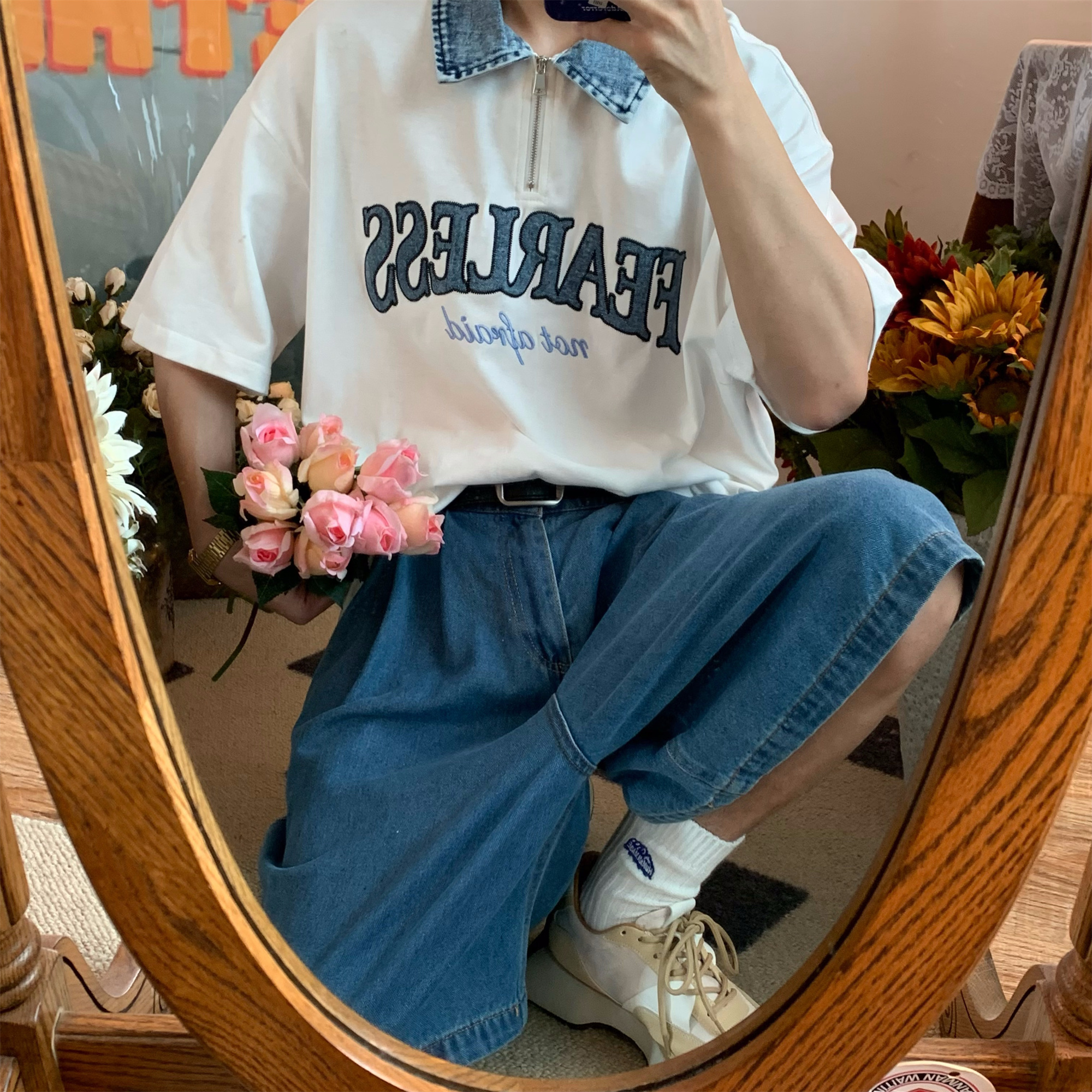 Elevate your summer wardrobe with our Denim Spliced Japanese Retro Short Sleeve Polo Shirt, designed for a loose fit that keeps you cool and stylish. This eye-catching tee captures the essence of 90s and Y2K fashion, featuring unique denim splicing that adds a distinctive touch to your outfit. Perfect for casual outings or laid-back days in the city, this versatile shirt effortlessly blends comfort with retro flair. Don’t miss out on this must-have piece—add it to your cart today and embrace the summer vibes!