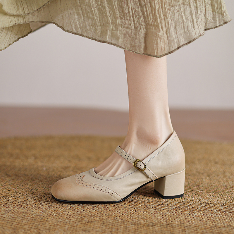 Concert Outfit Square Toed High Heeled Mary Janes Women Chunky Heel, Shallow Mouth, Italian, High Footwear