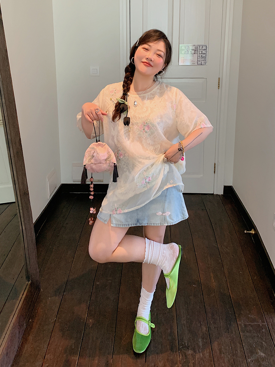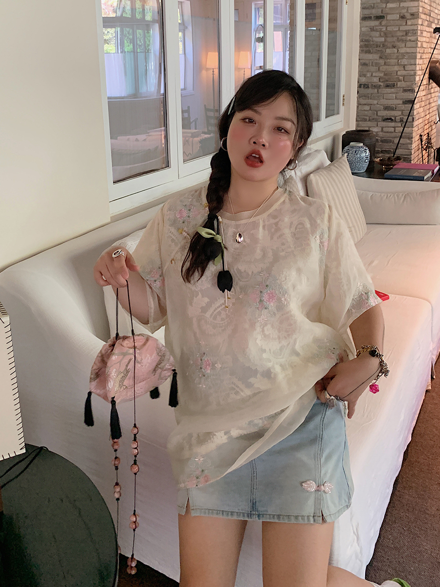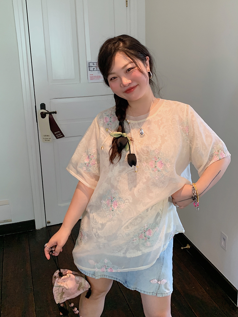 Elevate your summer wardrobe with our Embroidered Chinese Style Lace T-Shirt, designed for women who embrace bohemian elegance and national wind aesthetics. This plus-size top features exquisite embroidery and delicate lace detailing, ensuring a comfortable and flattering fit for all body types. Perfect for warm weather outings, its short sleeves and breathable fabric make it a must-have for effortless style. Don’t miss out on this unique piece—add it to your cart today and step into summer with confidence!