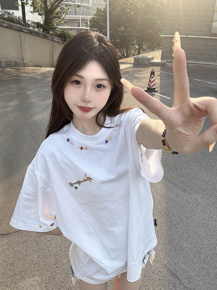 Elevate your summer wardrobe with our Embroidered Floral Letter Heavyweight Short Sleeve T-Shirt for Women. This unique and stylish top features a relaxed fit, perfect for pairing with your favorite shorts or jeans. The intricate floral embroidery adds a touch of elegance, making it an ideal choice for trendy couples looking to make a statement. Don’t miss out on this must-have piece for Summer 2025—add it to your cart and showcase your fashion-forward style today!