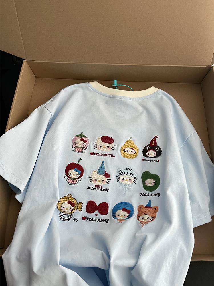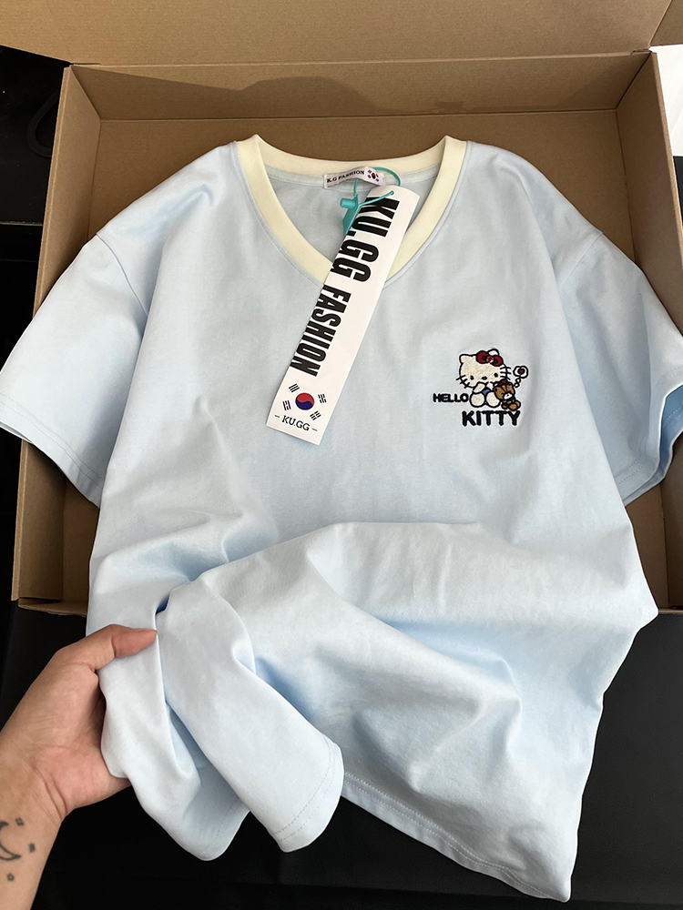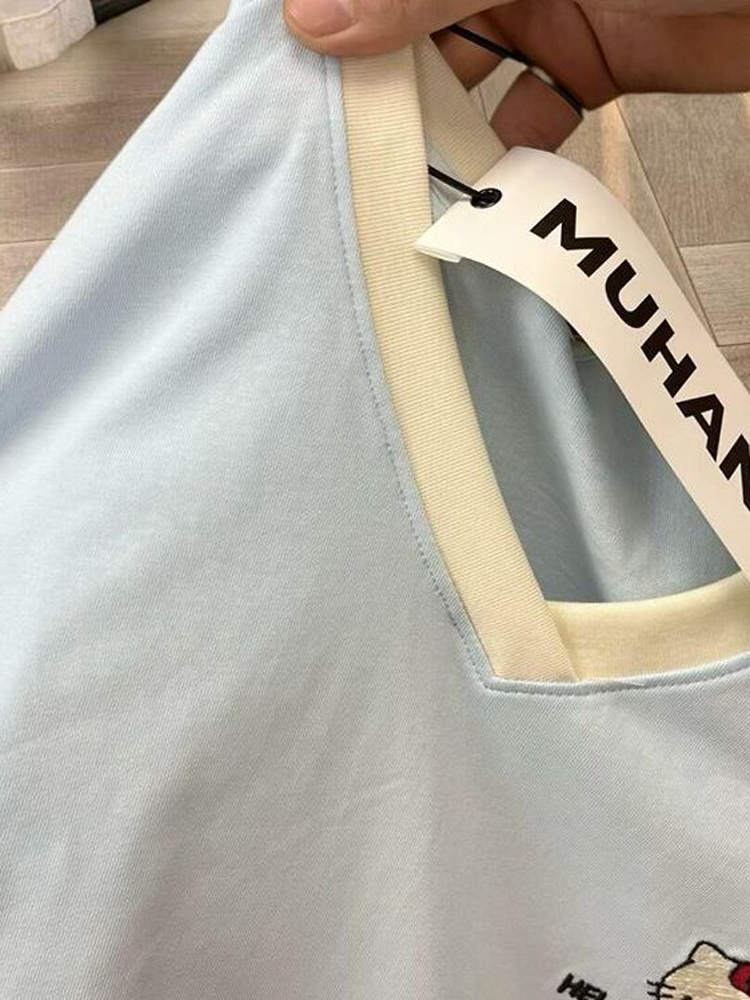 Elevate your summer wardrobe with our Embroidered Kitty Cat V-Neck Short Sleeve T-Shirt for Women, designed for the cute and cool girl in you! This charming tee features a unique cartoon design that adds a playful touch to any outfit, while the soft fabric ensures a comfortable fit all day long. Perfect for casual outings or lounging at home, this stylish t-shirt is a must-have for effortless fashion. Don’t miss out on this trendy addition—add it to your cart today!