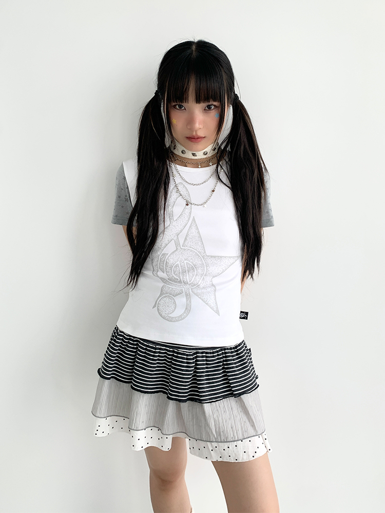 Concert Outfit Faded Multi Printed T- shirt Women Summer Flutter Sleeve Short Sleeve TopBlack, White, Gray