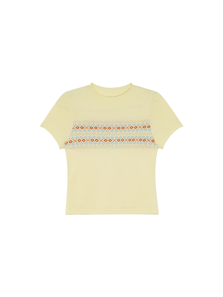 Elevate your summer wardrobe with our Fair Isle Geometric Jacquard Short-Sleeve T-Shirt for Women. This slim-fit, flattering knit top features a stunning geometric pattern that adds a trendy touch to any outfit, making it perfect for casual outings or stylish gatherings. Crafted for comfort and style, this versatile tee pairs effortlessly with your favorite shorts or jeans. Don’t miss out on this must-have addition to your closet—add it to your cart today!