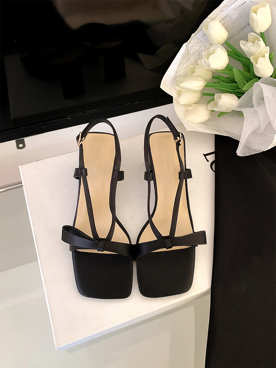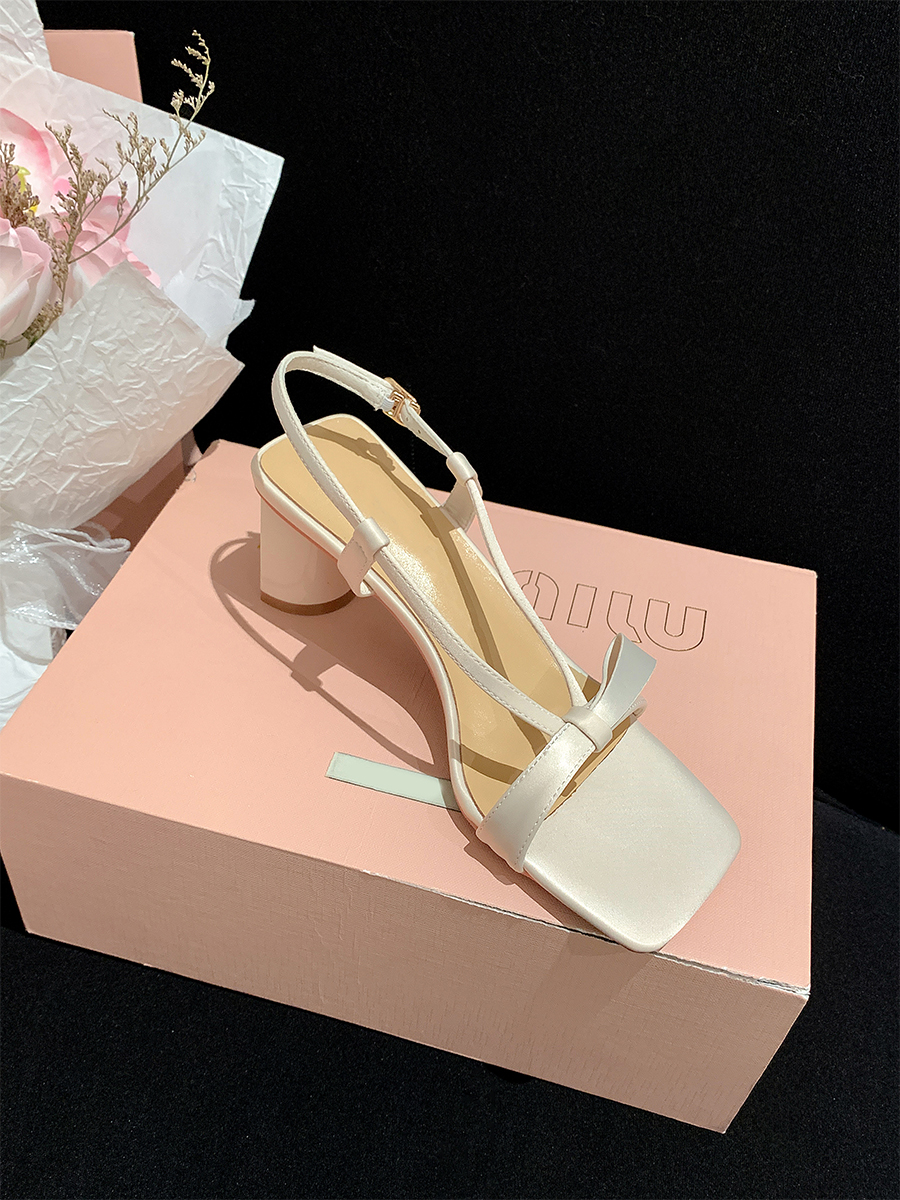 Concert Outfit Fairy Square Head Bowknot Chunky Heeled Sals One Strap White Heels Summer Outfits