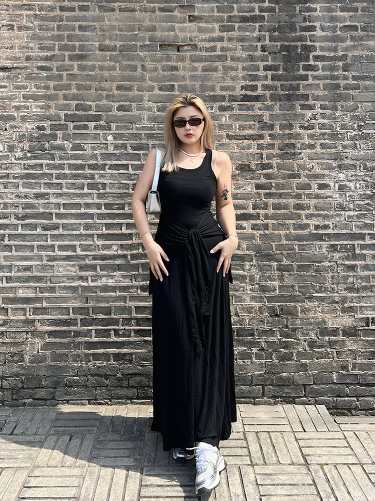 Elevate your wardrobe with our Faux Two-Piece Black Vest Dress, a stunning piece that embodies American street style. This mid-length sleeveless dress features a flattering slimming fit and a gracefully flowing long skirt, perfect for any occasion. Effortlessly chic, it’s designed to enhance your silhouette while providing ultimate comfort. Don’t miss out on this versatile addition to your collection—add it to your cart today and step out in style!